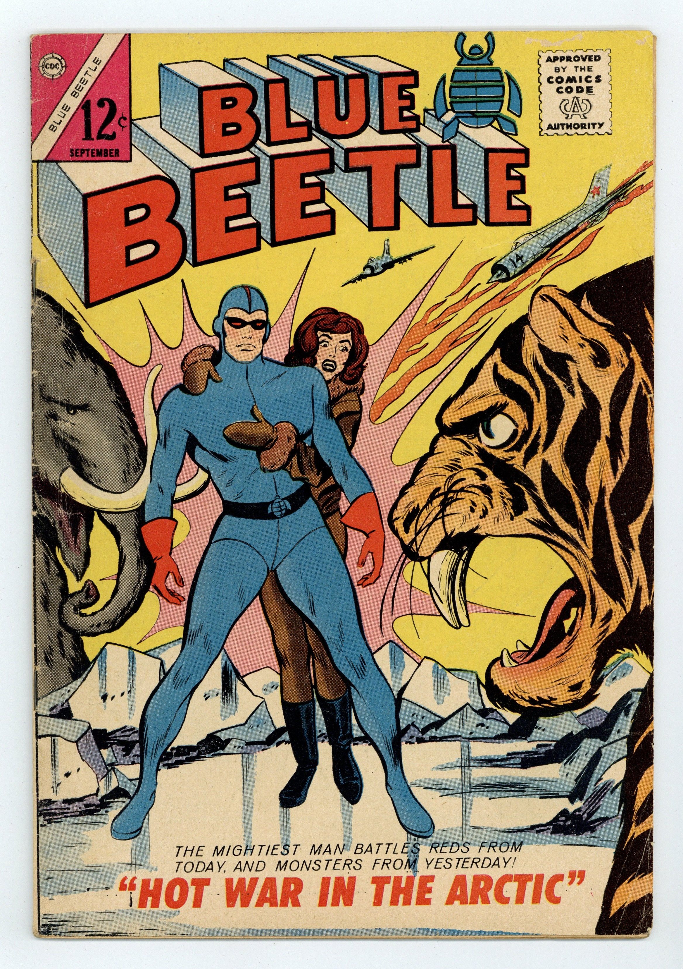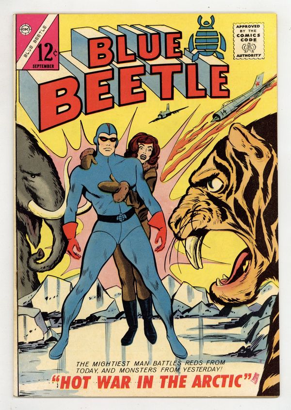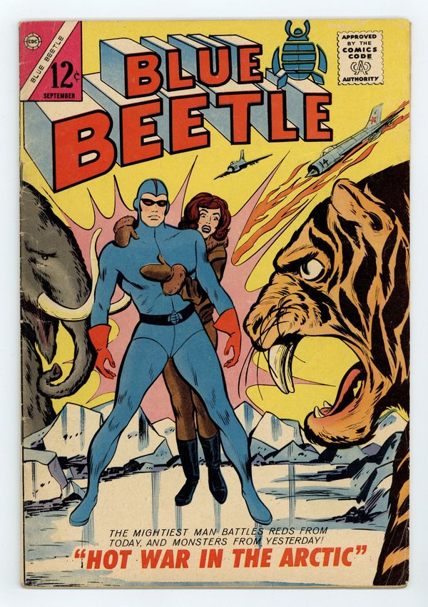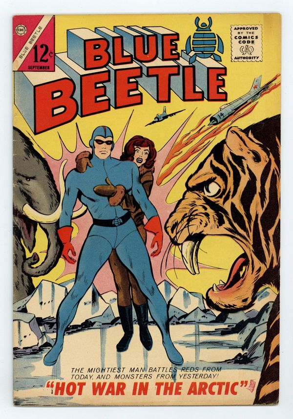 Cover by Vince Colletta. Stories and art by Joe Gill, Bill Fraccio and Tony Tallarico. The second Charlton series to feature Dan Garrett, the Golden Age Blue Beetle. In the frozen North, Blue Beetle faces both prehistoric monsters and Commie spies, bringing new meaning to the phrase "Cold War." Trina and Jacques discover the Lost City of Atlantis in an air pocket on the ocean floor. Hot War in the Arctic; The Waiting Game; Space Engineering; The Thief; The Lost City. 32 pages, Full Color. Cover price $0.12.