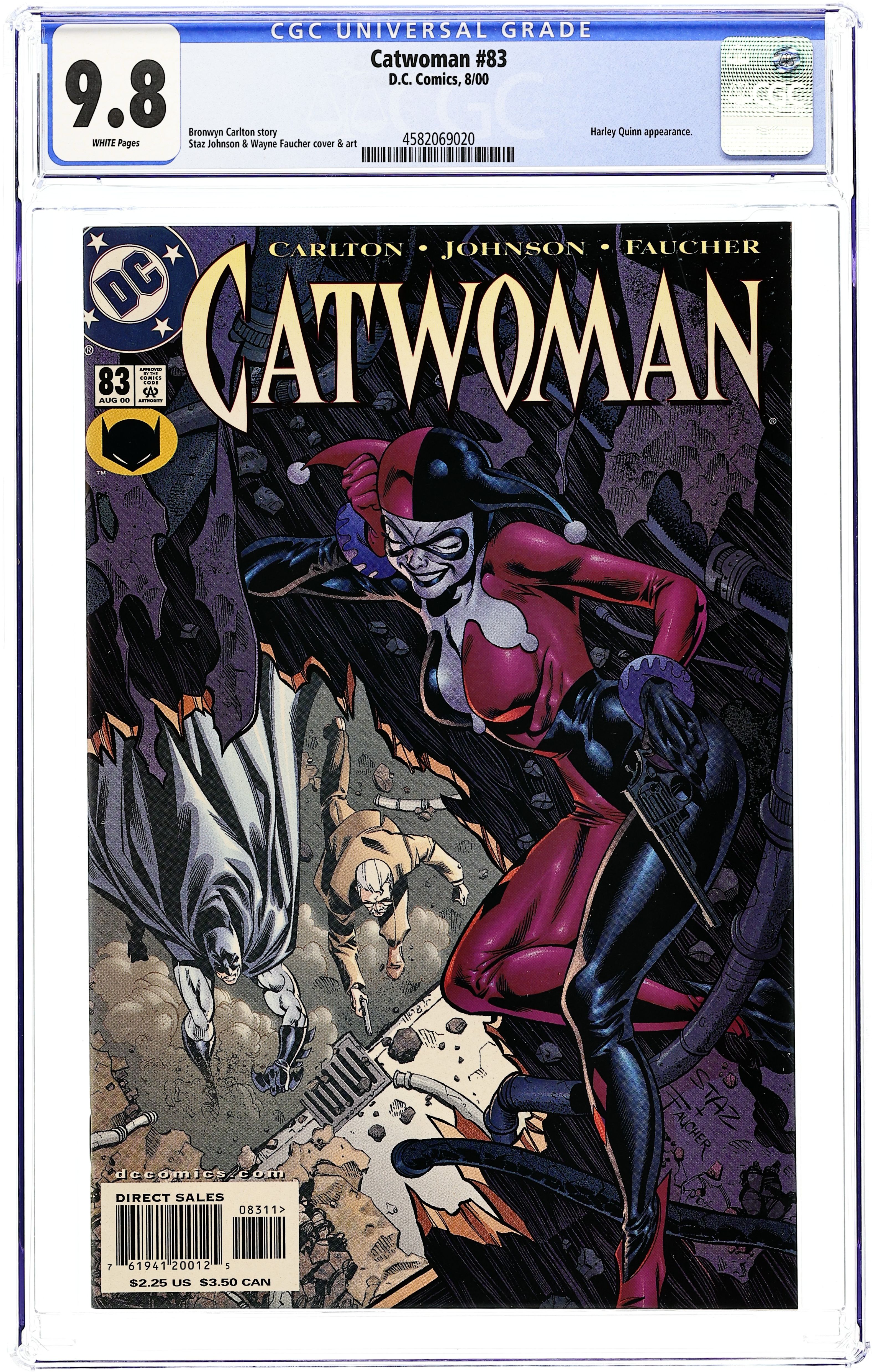 WRITTEN BY BRONWYN CARLTON; ART AND COVER BY STAZ JOHNSON AND WAYNE FAUCHER. Batman and Commissioner Gordon guest star as the siege at the woman's prison is about to boil over into a full-scale riot. With the fleeing feline nowhere to be found, Bats and the Commish follow a deadly trail of clues, determined to bring the now-wanted-for-murder kitty cat down once and for all. Little does anyone realize that Catwoman's not alone...in fact, she's got some very deadly company, and Gordon is about to become the first of many to learn that having Catwoman as an enemy is a very painful thing indeed! FC, 32 PG. Cover price $2.25.