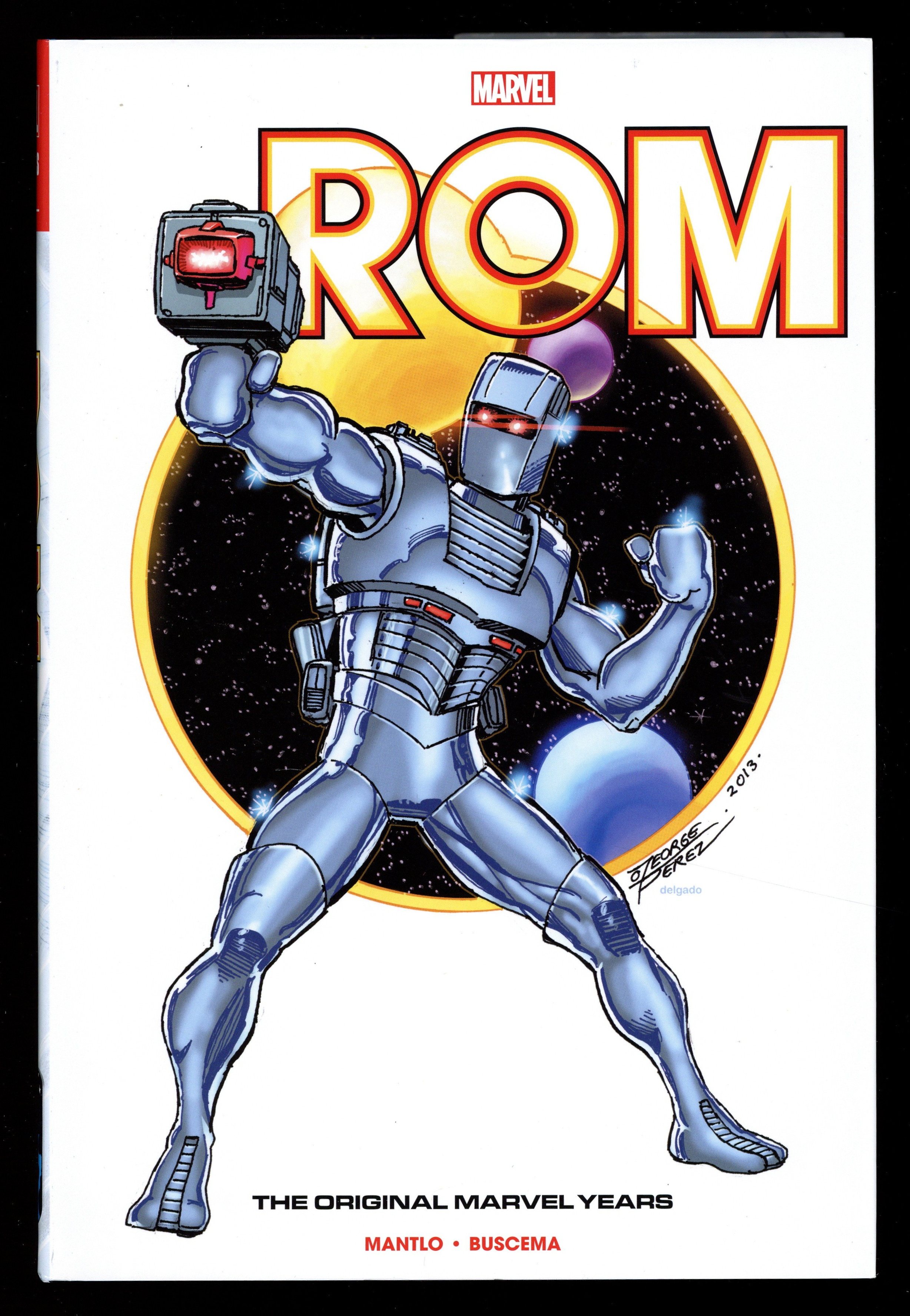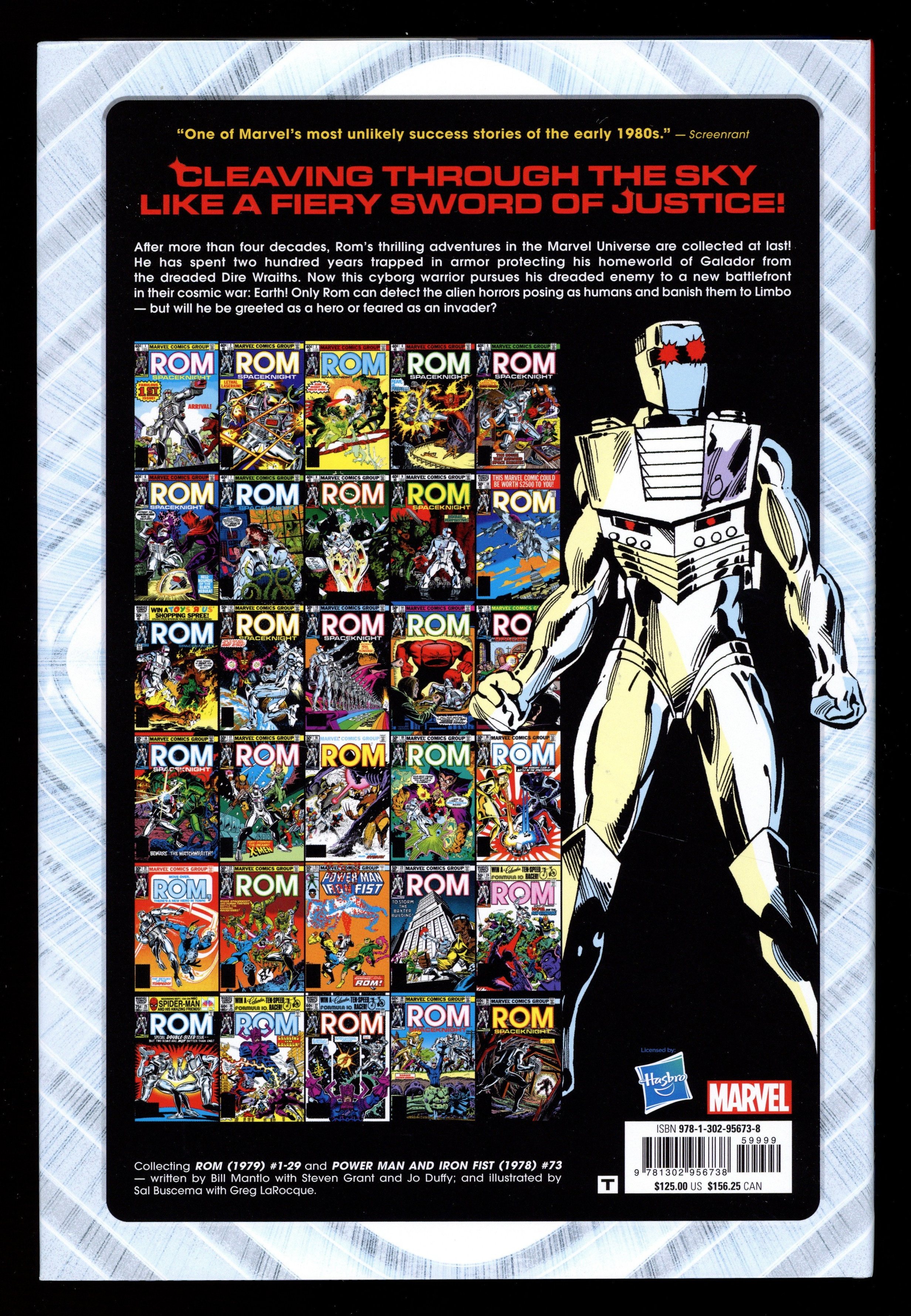 Volume 1 - 1st printing. Collects ROM (1979-1986 Marvel) #1-29 and Power Man and Iron Fist (1972-1986 Hero for Hire) #73. Written by Bill Mantlo, Steven Grant, and Mary Jo Duffy. Art by Sal Buscema, Greg La Rocque, Joe Sinnott, Steve Mitchell, Ricardo Villamonte, Al Milgrom, Chic Stone, Mike Esposito, and Rick Magyar. Cover by Sal Buscema. Back Cover by Greg La Rocque and Steve Mitchell. Introduction by Chris Ryall. He strikes from outer space...and nothing can stop him! Marvel Comics is proud to present the iconic early adventures of the greatest of Spaceknights - Rom! Centuries ago, Rom pledged his life to protect his planet, Galador, from the evil Dire Wraiths. Now, Rom has tracked these vile creatures across the cosmos to Earth, where they have infiltrated the highest levels of power - including S.H.I.E.L.D. itself! Armed with his energy analyzer, only Rom can see the Wraiths' true form - and with his neutralizer, he can blast them into Limbo! But what will Earth make of this armored invader? Will Rom's quest be aided or hindered by encounters with the X-Men, the Fantastic Four, Jack of Hearts, Nova, and Power Man and Iron Fist? And when Galactus targets Galador, can Rom and his fellow Spaceknights save their homeworld from destruction? Hardcover, 8 1/2-in. x 11-in., 704 pages, full color. NOTE: "ROM Spaceknight is, hands down, one of the most essential Marvel Sagas in the history of the House of Ideas. Those that were there to experience this amazing, thought-provoking, and exciting tale remember it fondly and know just how vital ROM is to the 1980s era of the Marvel Mythos. And for those that were not there to experience ROM firsthand are in for a true treat as this epic sci-fi tale unfolds before them with each thrilling turn of the page." - Odinson, mycomicshop.com Archivist Cover price $125.00.