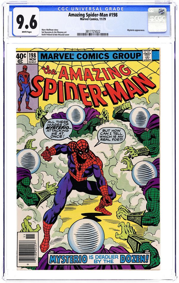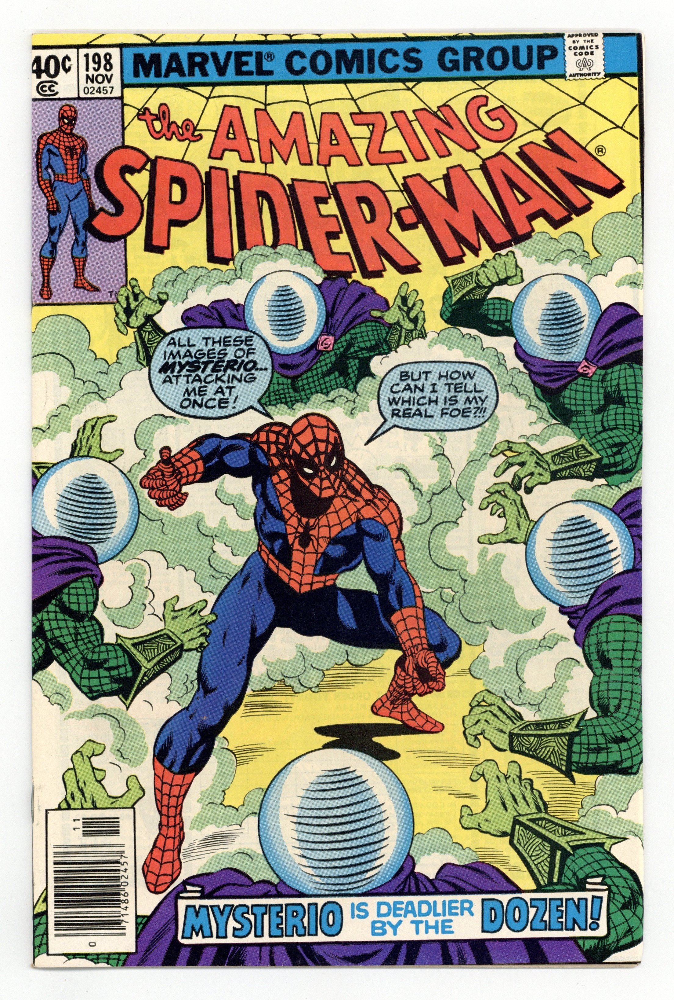 Tags: Spider-Man$20.00Newsstand Edition. "Mysterio is Deadlier by the Dozen!" Part 1 of 2. Script by Marv Wolfman. Art by Sal Buscema (layouts) and Jim Mooney (finishes). Cover by Keith Pollard and Bob McLeod. At last the web-slinger arrives at Restwell Nursing Home to investigate his aunt's "apparent" death! The spectacular one anticipates a hard-hitting clash with his old adversary, but the Master of Illusion is at the top of his game! Spidey can't lay a glove on Mysterio! Perception trumps reality for your friendly neighborhood Spider-Man! Appearances by Dr. Marla Madison, J. Jonah Jameson, and the burglar. Flashback cameo by the second Mysterio (aka Danny Berkhart). (Notes: Spider-Man previously clashed with the original Mysterio in Amazing Spider-Man 66 & 67. The wall-crawler battled the second Mysterio in Amazing Spider-Man 141 & 142.) 36 pages. Cover price $0.40.