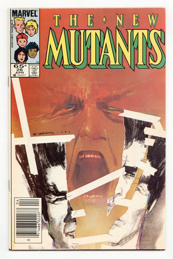 Newsstand Edition. First 65-cent cover price issue. 1st full appearance of Legion. Cover art by Bill Sienkiewicz. Legion, script by Chris Claremont, art by Bill Sienkiewicz; Gabrielle Haller's autistic son begins exhibiting telepathic, telekinetic, and pyrotic powers; Prof. X and the New Mutants come to help; Wolfsbane encounters Rev. Craig again; Emma Frost gives Empath an ultimatum; Magneto and Aleytys begin a relationship. 36 pgs. $0.65. Cover price $0.65.