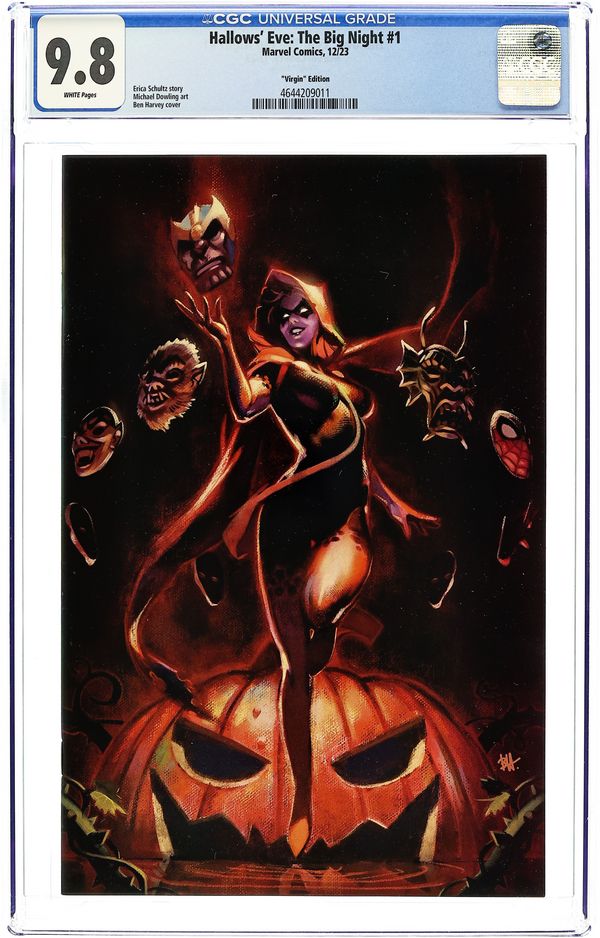 Limited 1 for 50 Retailer Incentive Variant Cover. Written by Erica Schultz. Art by Michael Dowling. Cover by Ben Harvey. It's October 31st at E.S.U. so you know what that means: A Halloween party won't go as planned and a bunch of powerless kids will be in a lot of trouble! Hallows' Eve was once powerless and was once a victim. Now she's anything but. Her magical masks give her the ability to help - but Eve isn't a hero, is she? 32 pages, full color. Rated T+ Cover price $4.99.