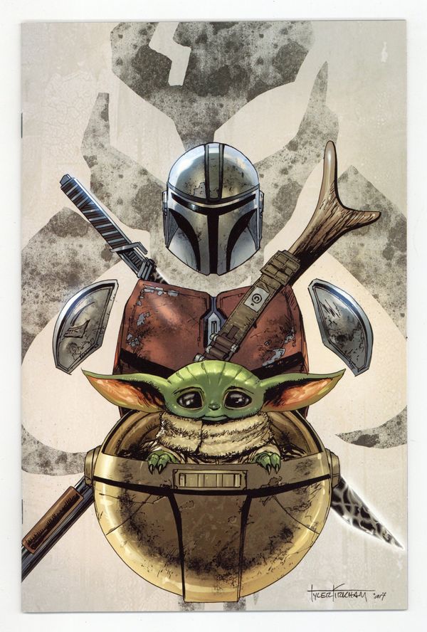 Comics Illuminati (Unknown Comics, Street Level Hero, and Comic Traders) Exclusive Virgin Cover by Tyler Kirkham. Written by Rodney Barnes. Art by Georges Jeanty. For the first time, THE MANDALORIAN arrives in comics! The Mandalorian bounty hunter tracks a target for a well-paying, mysterious client. Witness the introduction of Din Djarin and the first meeting between the Mandalorian and the Child! 40 pages, full color. Rated T