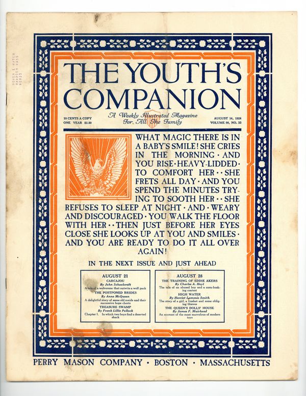 Published Aug 1924 by Perry Mason Company.$6.00- Spine split 10%. Staple rust: Moderate.