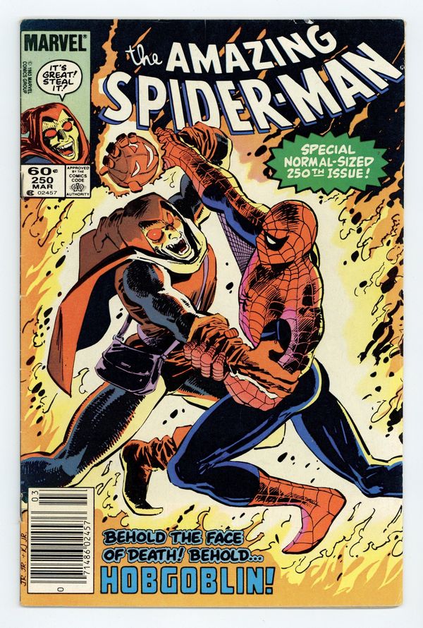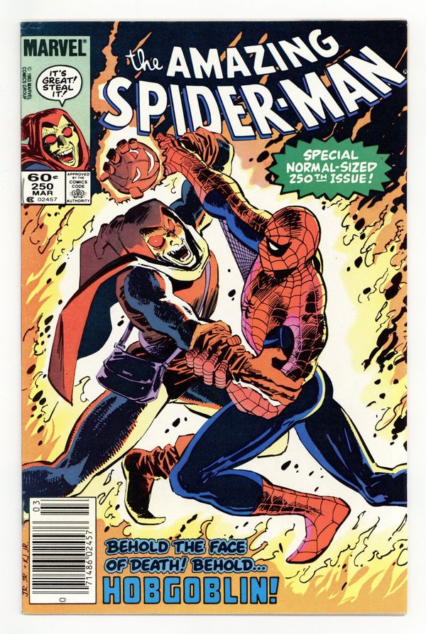 Tags: Spider-Man$12.50Newsstand Edition. "Confessions!" Part 2 of 3. Script by Roger Stern. Art by John Romita Jr. (breakdowns) and Klaus Janson (finishes). Cover by John Romita Jr. and Klaus Janson. The web-slinger's one-man war vs. the Hobgoblin continues! The amazing one privately contacts all the businessmen being extorted (by the goblin) in hopes of getting a lead on the super-villain's whereabouts! But eventually Spider-Man locates the Hobgoblin the old-fashioned way...with a spider tracer! In the Big Apple's Warehouse District, the wall-crawler comes face to face with his startled foe! Can the web-slinger score a quick victory and end the menace of the new goblin? Meanwhile, J. Jonah Jameson decides it's time to confess his involvement in the development of the Scorpion. The Daily Bugle's publisher prepares to take his mea culpa...in the pages of his own newspaper. Cameo appearances by Harry Osborn and Roderick Kingsley. Flashback cameo by the Kingpin. (Notes: This issue completes the sensational 2-year Stern-Romita Jr. run on the Amazing Spider-Man title. A magnificent collection of issues featuring the Black Cat, Foolkiller, Juggernaut, Cobra, and the Vulture; and of course, highlighted by the creation of the Hobgoblin.) 36 pgs. Cover price $0.60.