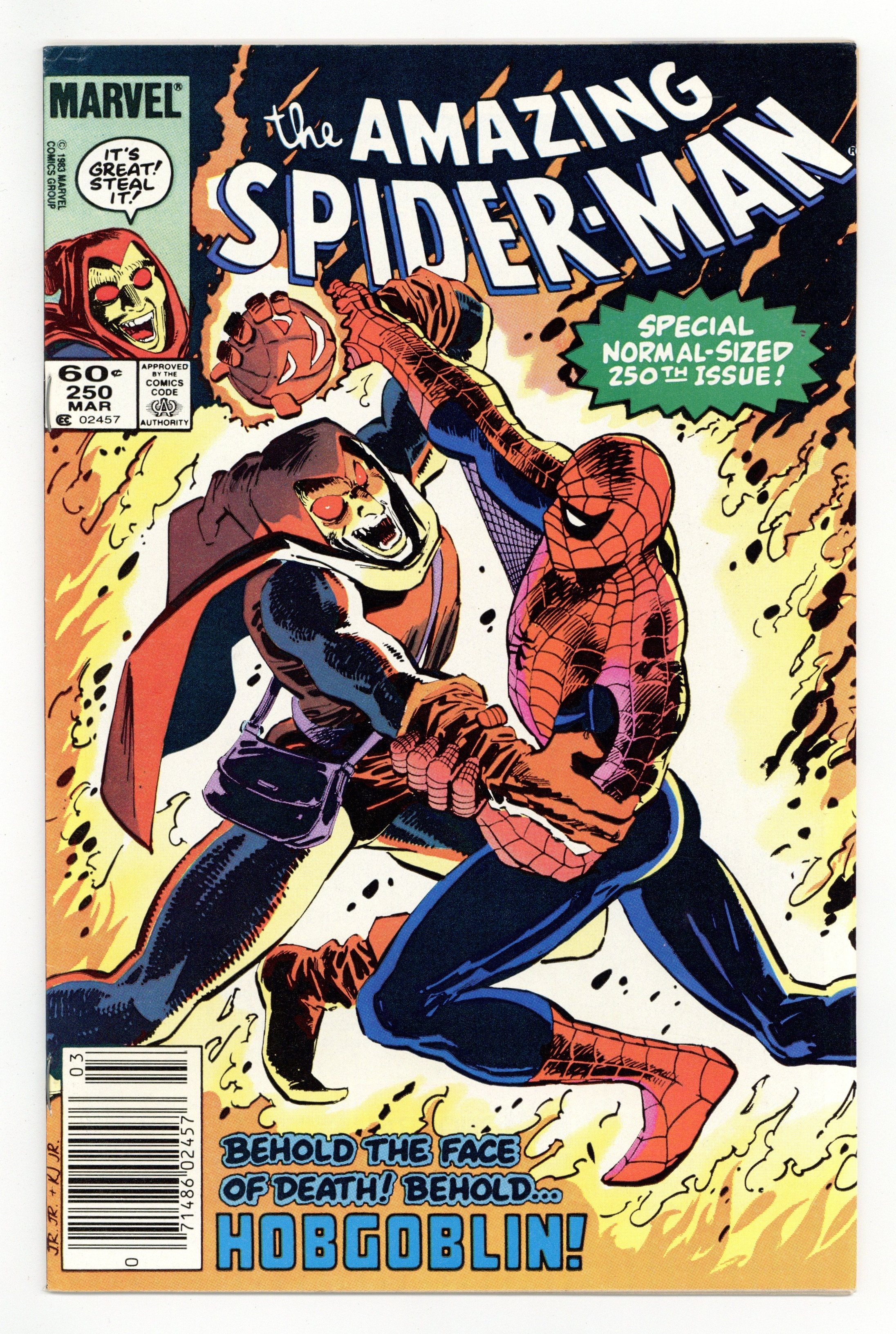 Tags: Spider-Man$13.50Newsstand Edition. "Confessions!" Part 2 of 3. Script by Roger Stern. Art by John Romita Jr. (breakdowns) and Klaus Janson (finishes). Cover by John Romita Jr. and Klaus Janson. The web-slinger's one-man war vs. the Hobgoblin continues! The amazing one privately contacts all the businessmen being extorted (by the goblin) in hopes of getting a lead on the super-villain's whereabouts! But eventually Spider-Man locates the Hobgoblin the old-fashioned way...with a spider tracer! In the Big Apple's Warehouse District, the wall-crawler comes face to face with his startled foe! Can the web-slinger score a quick victory and end the menace of the new goblin? Meanwhile, J. Jonah Jameson decides it's time to confess his involvement in the development of the Scorpion. The Daily Bugle's publisher prepares to take his mea culpa...in the pages of his own newspaper. Cameo appearances by Harry Osborn and Roderick Kingsley. Flashback cameo by the Kingpin. (Notes: This issue completes the sensational 2-year Stern-Romita Jr. run on the Amazing Spider-Man title. A magnificent collection of issues featuring the Black Cat, Foolkiller, Juggernaut, Cobra, and the Vulture; and of course, highlighted by the creation of the Hobgoblin.) 36 pgs. Cover price $0.60.