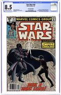 Tags: Star Wars$30.00Newsstand Edition. The Empire Strikes Back: Part 6 of 6. "Duel a Dark Lord!" Script by Archie Goodwin, art by Al Williamson and Carlos Garzon. Note: Part 6 of movie adaptation; based on the movie script; Williamson and Garzon both pencil and ink the art for this series. Plus: pin-ups by Walt Simonson, Joe Jusko, Fred Hembeck, Bob Layton and Marshall Rogers. Also: letters page commentary and farewell by Goodwin. Cover by Williamson and Garzon. Cover price $0.50.