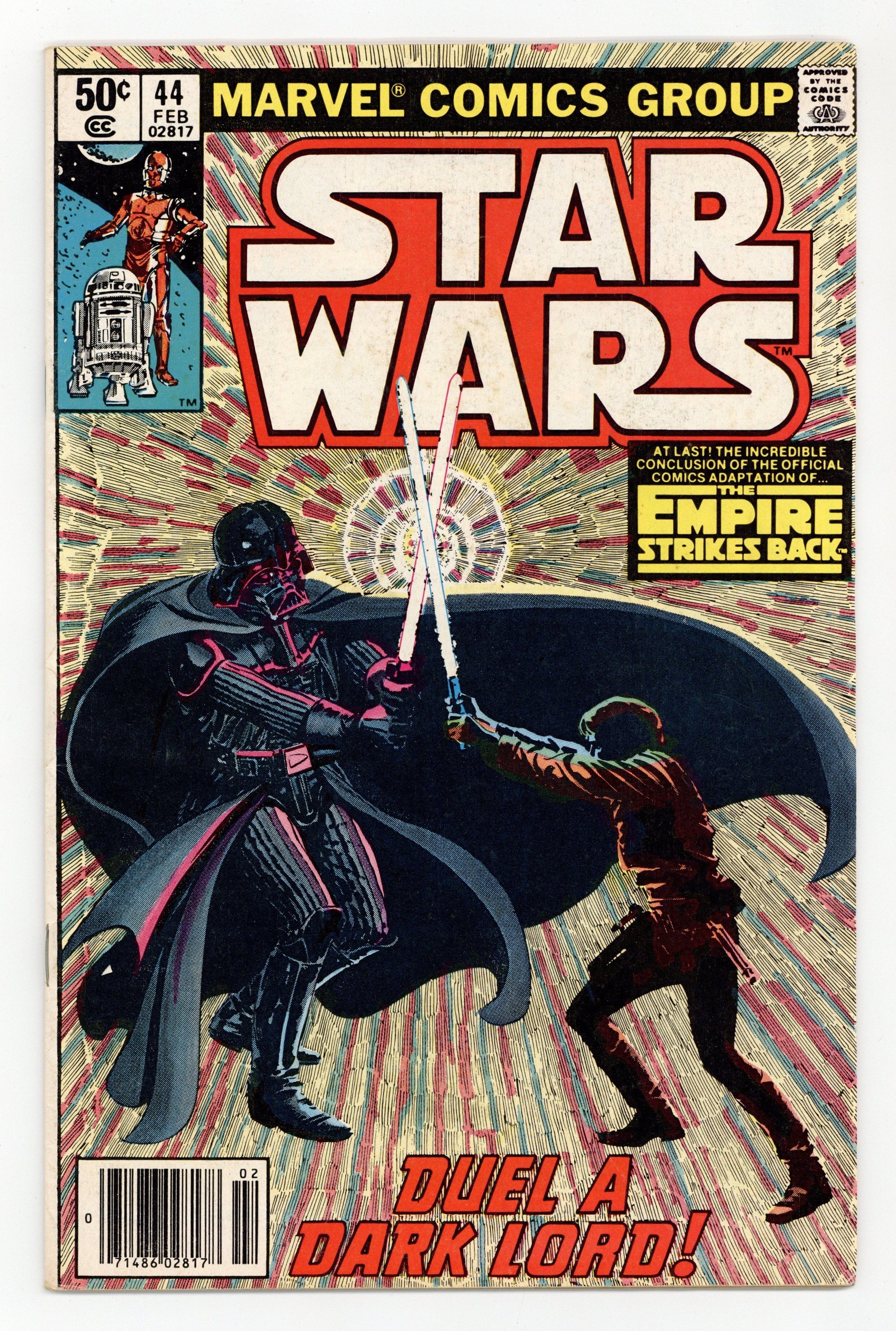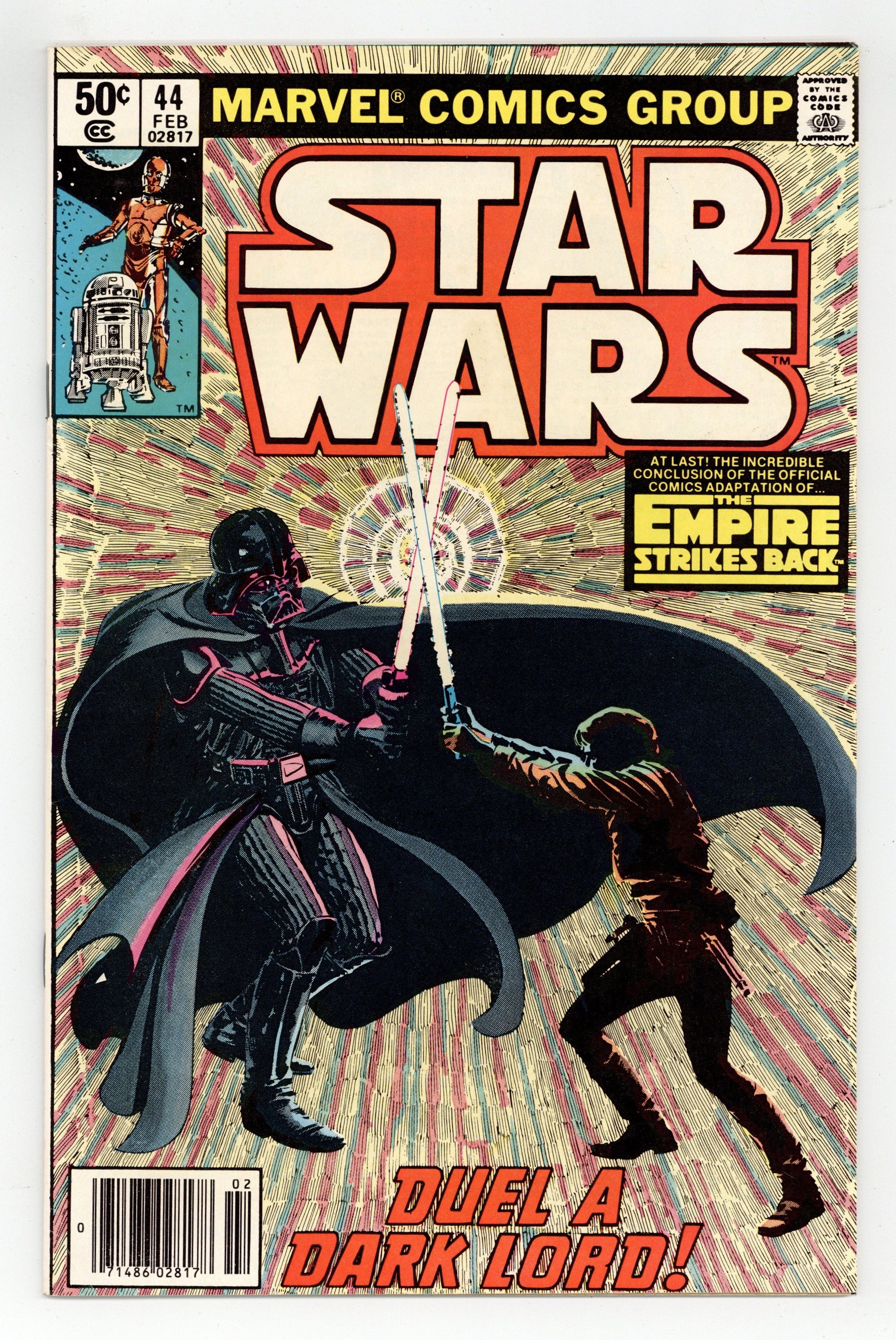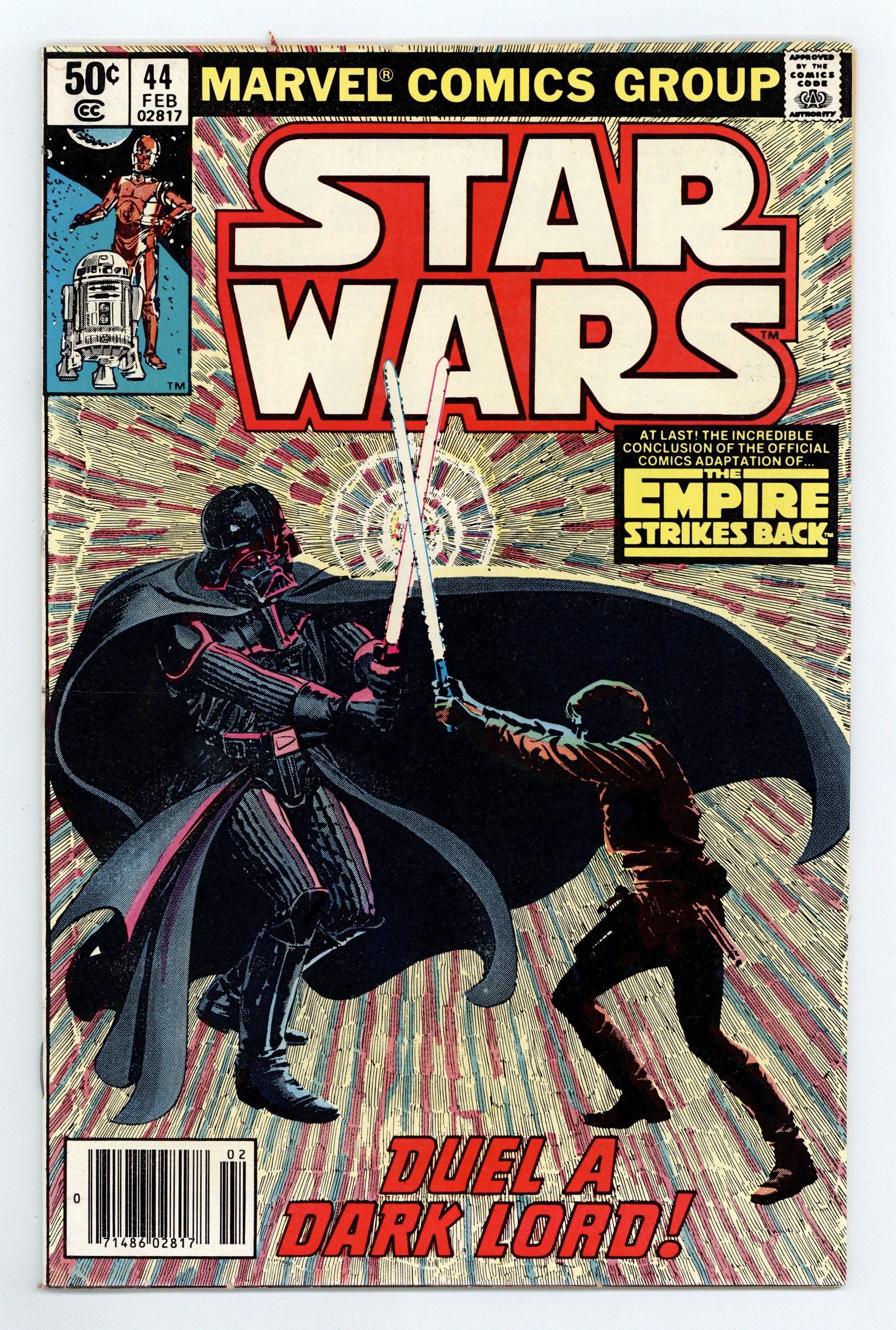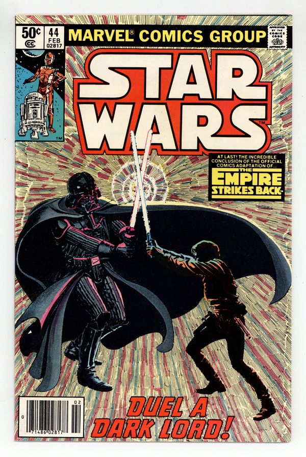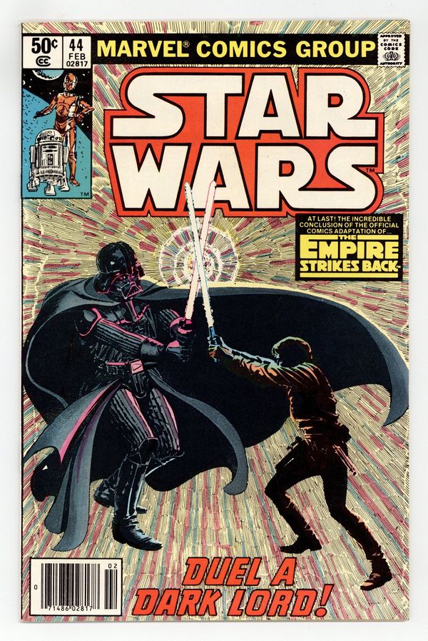 Newsstand Edition. The Empire Strikes Back: Part 6 of 6. "Duel a Dark Lord!" Script by Archie Goodwin, art by Al Williamson and Carlos Garzon. Note: Part 6 of movie adaptation; based on the movie script; Williamson and Garzon both pencil and ink the art for this series. Plus: pin-ups by Walt Simonson, Joe Jusko, Fred Hembeck, Bob Layton and Marshall Rogers. Also: letters page commentary and farewell by Goodwin. Cover by Williamson and Garzon. Cover price $0.50.