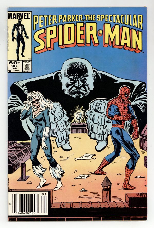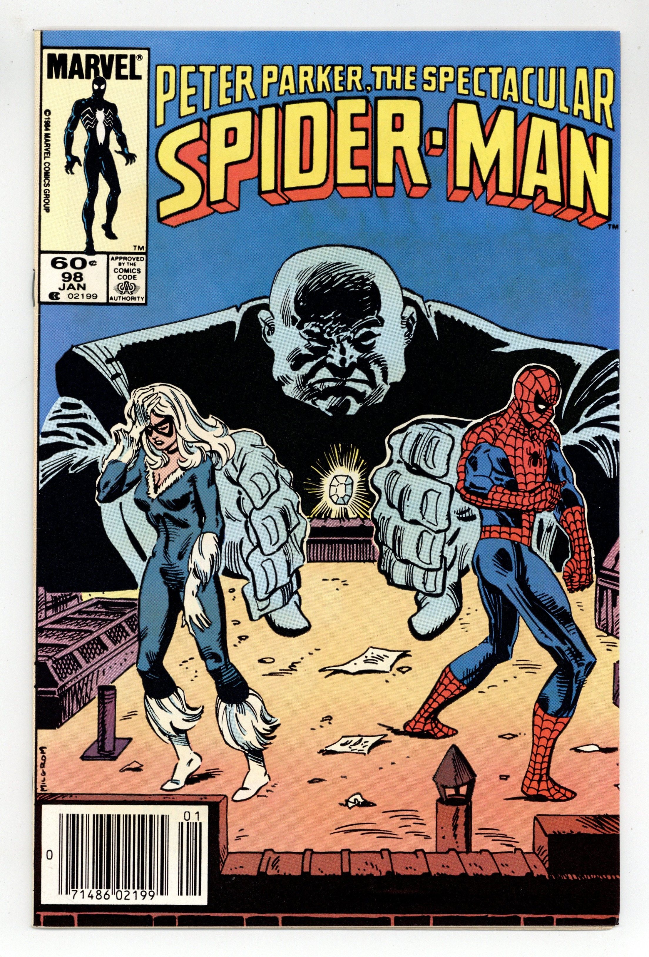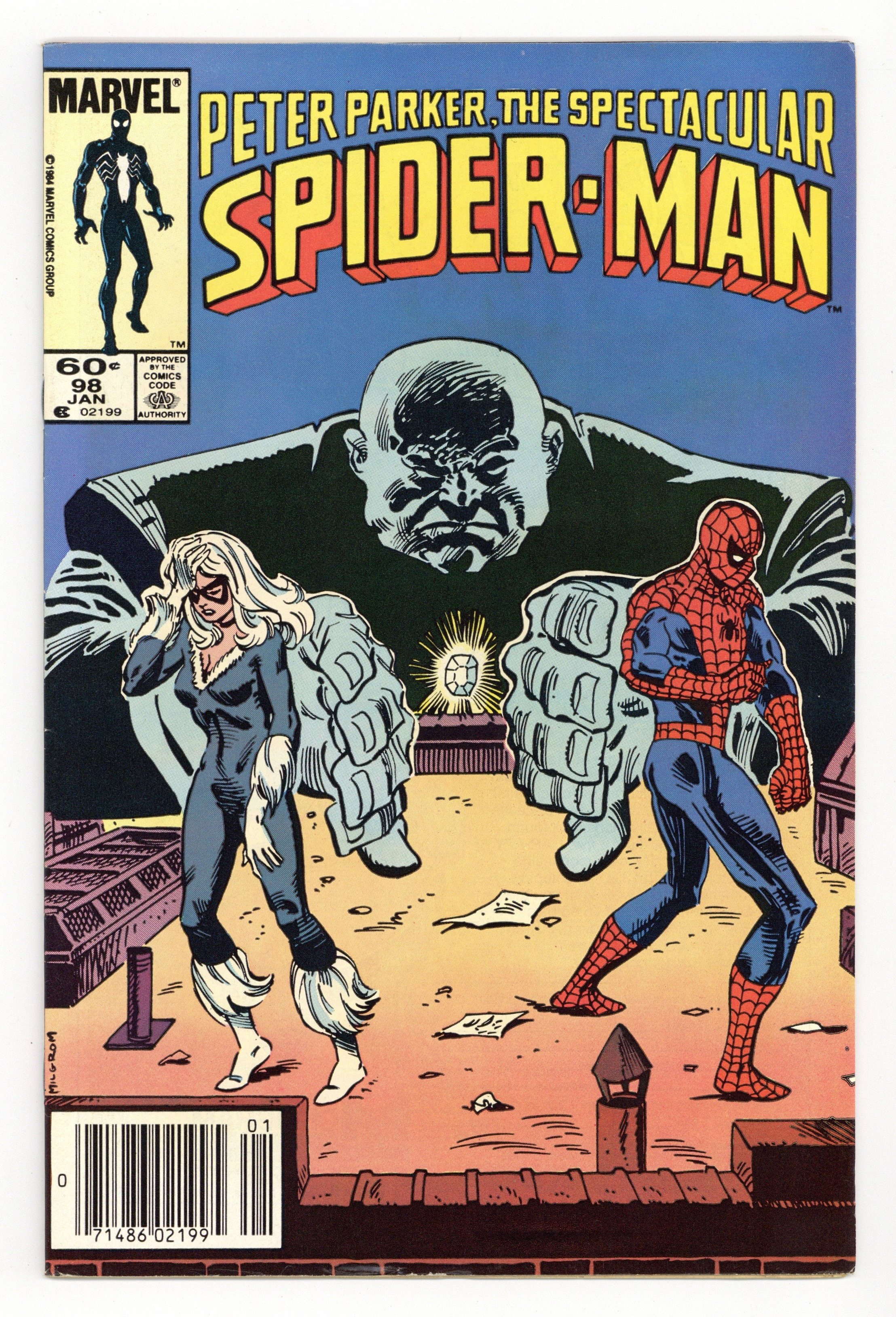Newsstand Edition. "True Confessions!" Script by Al Milgrom. Pencils by Herb Trimpe. Inks by Jim Mooney. Cover by Al Milgrom. The Black Cat finally tells the web-slinger the truth about the Kingpin's involvement in her gaining new powers. Spider-Man is shocked. Is this the beginning of the end for the wall-crawler and Felicia? Meanwhile, the alien symbiote has escaped from the Baxter Building and is on the prowl...looking for Spider-Man! First appearance of the Spot. Cameo appearance by the Kingpin. 32 pages Cover price $0.60.