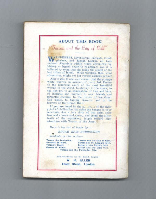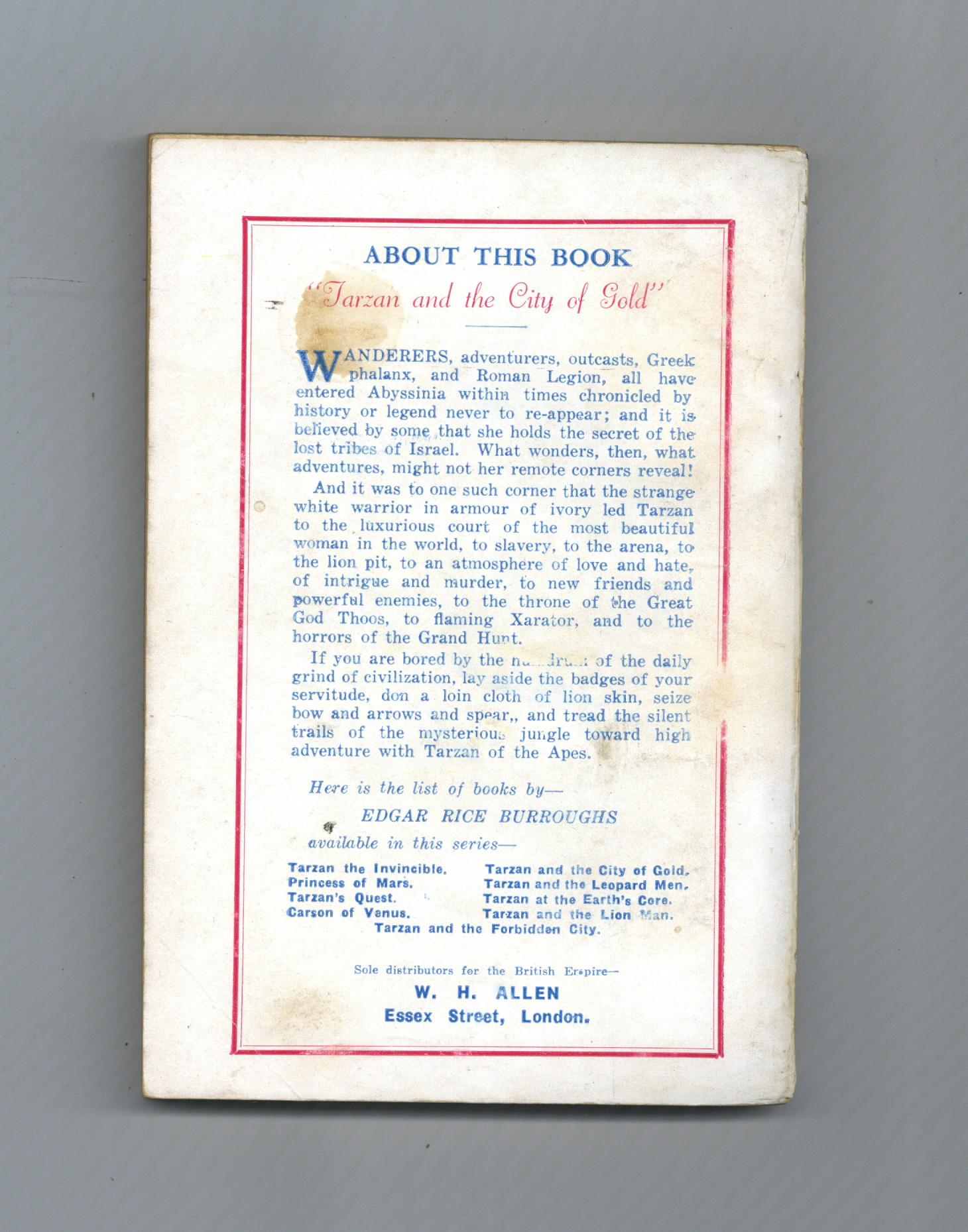 Digest-sized reprints of Tarzan novels by ERB from the UK. This issue: Tarzan and the City of Gold. 5" x 7", 136 pages, text.