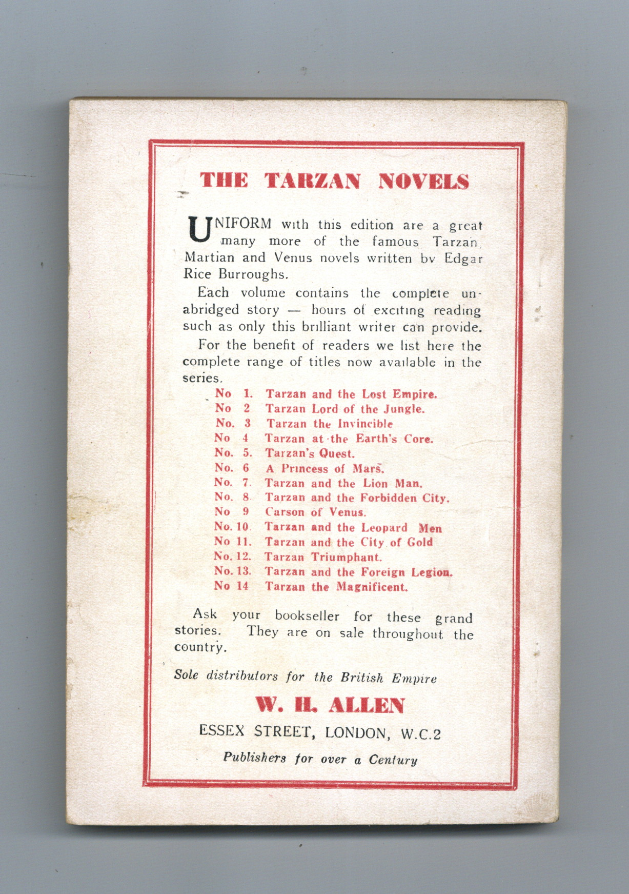 Digest-sized reprints of Tarzan novels by ERB from the UK. This issue: Tarzan at the Earth's Core. 5" x 7", 128 pages, text.