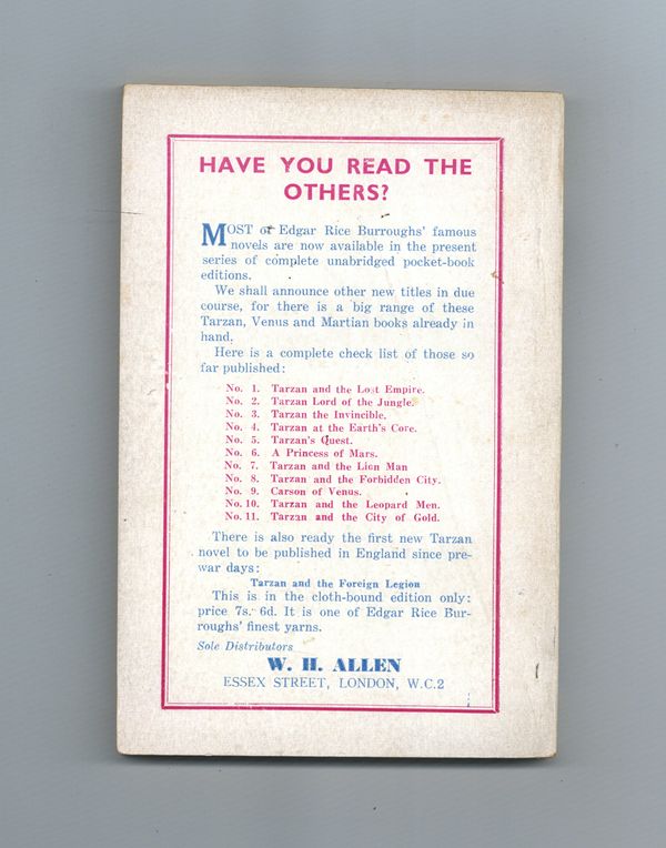 Published 1950 by Mark Goulden Ltd..$17.00Digest-sized reprints of Tarzan novels by ERB from the UK. This issue: Tarzan Lord of the Jungle. 5" x 7", 136 pages, text.