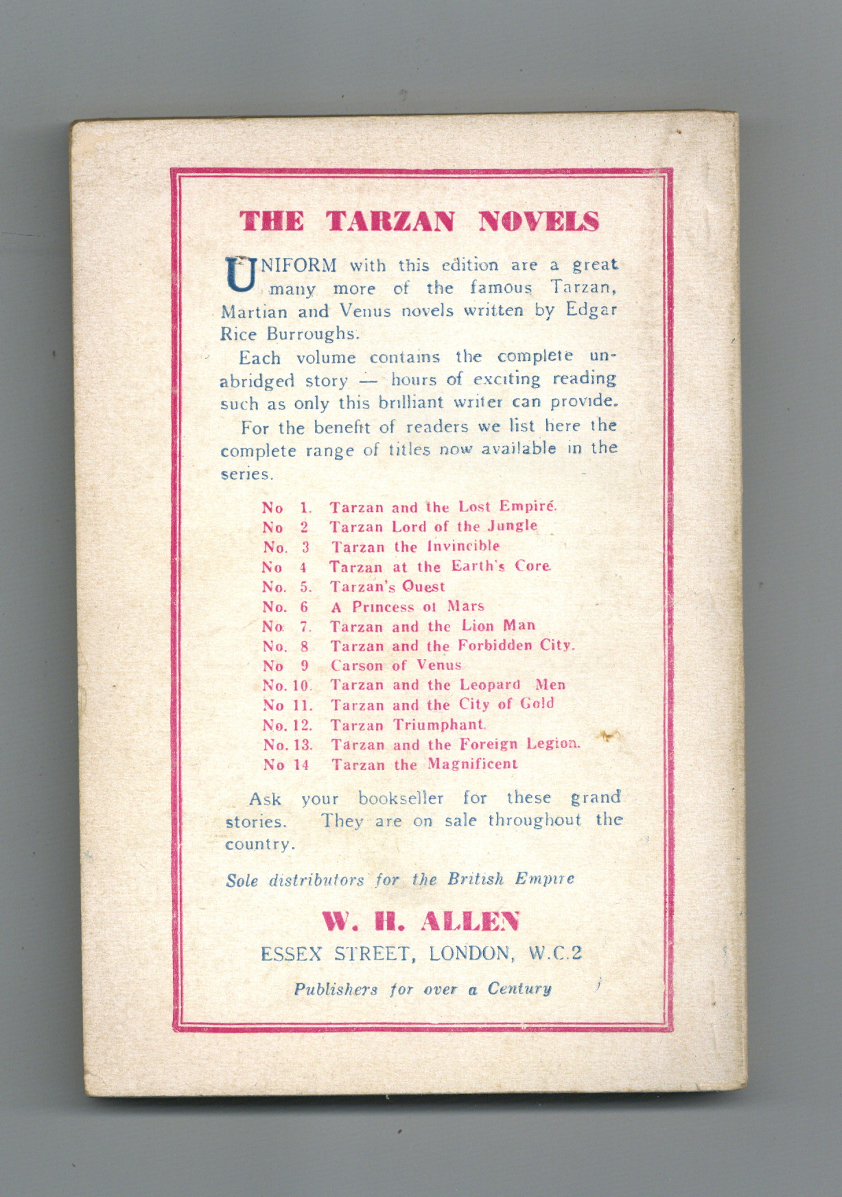 Published 1950 by Mark Goulden Ltd..$45.00Digest-sized reprints of Tarzan novels by ERB from the UK. This issue: Tarzan the Magnificent. 5" x 7", 128 pages, text.
