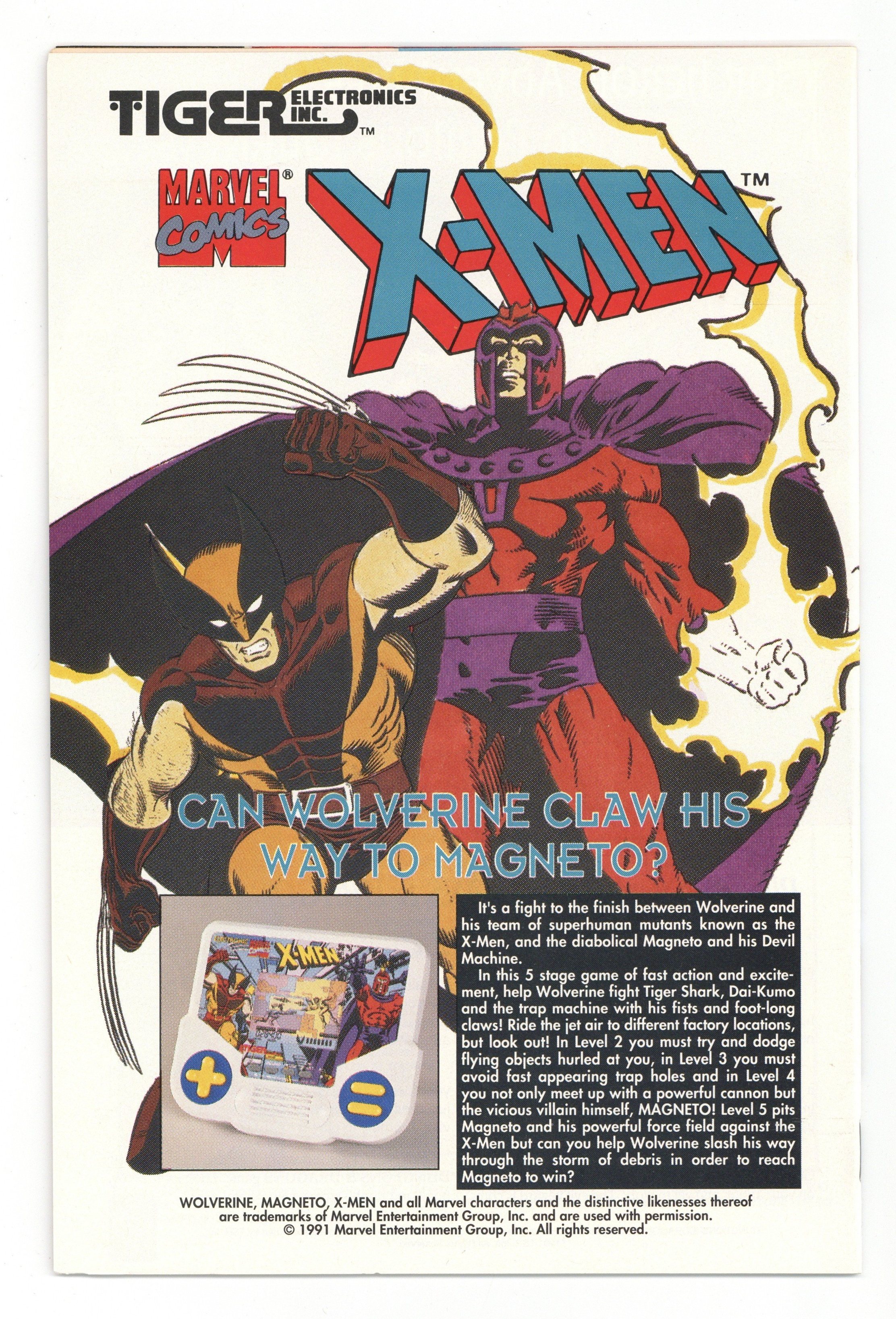 Newsstand Edition. Cover pencils by Jim Lee, inks by Scott Williams. The Resurrection and the Flesh, script by Jim Lee (Plot) and John Byrne, pencils by Jim Lee, inks by Scott Williams. First appearance of Omega Red! The Hand brings Omega Red (formerly Arkady) back to life; The X-Men play basketball, mutant style; Moira agonizes over her part in the Magneto fiasco and leaves; Gambit and Rogue are on the way to a chaperoned date when Omega Red and the Hand interfere. Cover price $1.00.