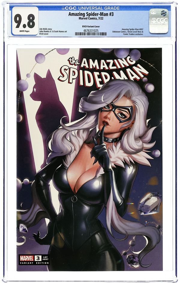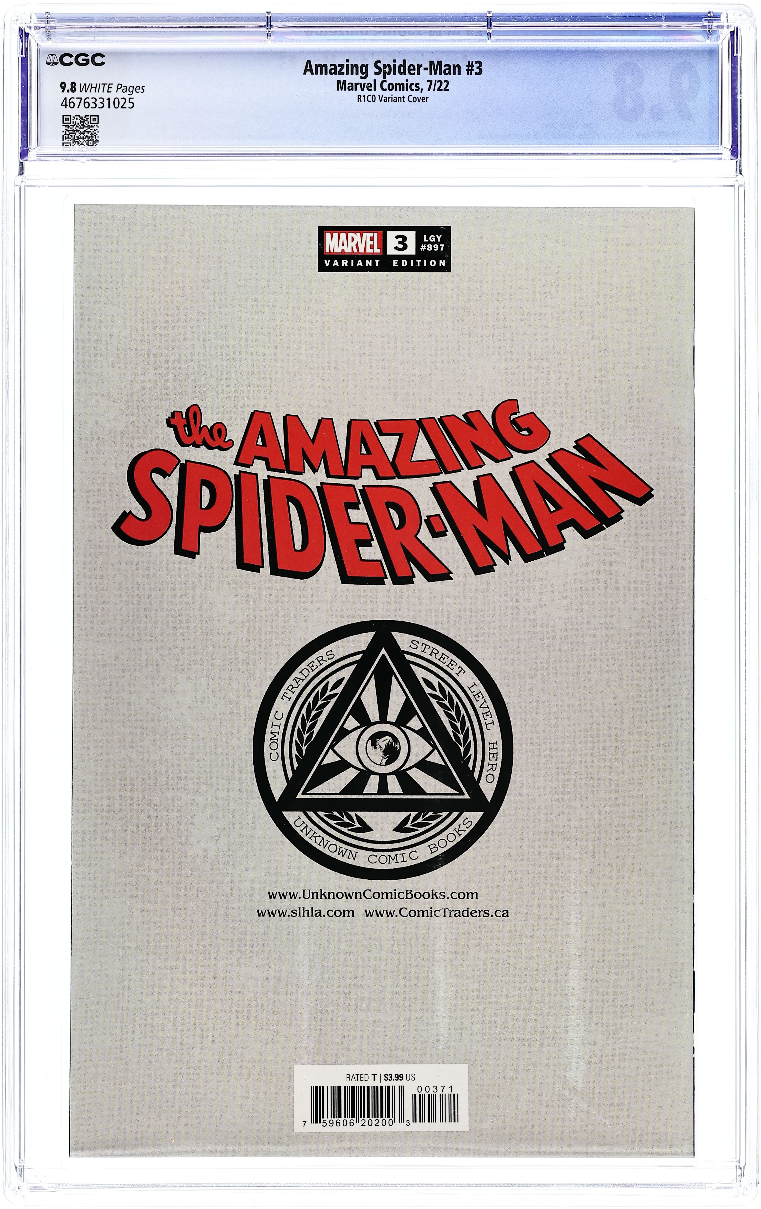 Comics Illuminati (Unknown Comics, Street Level Hero, and Comic Traders) Exclusive Cover by R1C0. Written by Zeb Wells. Art by John Romita Jr. I know that this is just #3, but did you notice that it's LGY #897? That means something big is RIGHT AROUND THE CORNER! There are things you don't know about Tombstone. Neither you, nor Spider-Man, will ever forget them. 28 pages, full color. Rated T