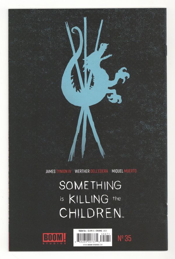 Published Nov 2023 by Boom Studios.$48.00Limited 1 for 100 Retailer Incentive Variant Cover. Written by James Tynion IV. Art by Werther Dell'Edera. Cover by Cliff Chiang. Erica's heartbreak in the wake of tragedy turns to rage as she faces Cutter one final time. But who else will fall at the hands of the Order, and how will things change for Cecilia and the House of Slaughter? 32 pages, full color. Rated T+ Cover price $3.99.