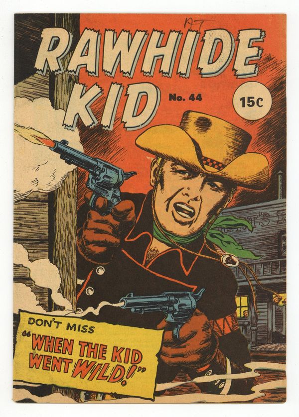 Published 1970 by Page Publications.$18.00Australian Reprint. Reprints stories from Rawhide Kid (1955). "The Origin of The Rawhide Kid" - Story by Stan Lee, Art by Jack Kirby; "When the Kid Went Wild" - Story by Stan Lee, Art by Jack Kirby; "Showdown with the Crow Magnum Gang" - Story by Stan Lee, Art by Jack Kirby; 7" X 10"; 28 pages, B&W.