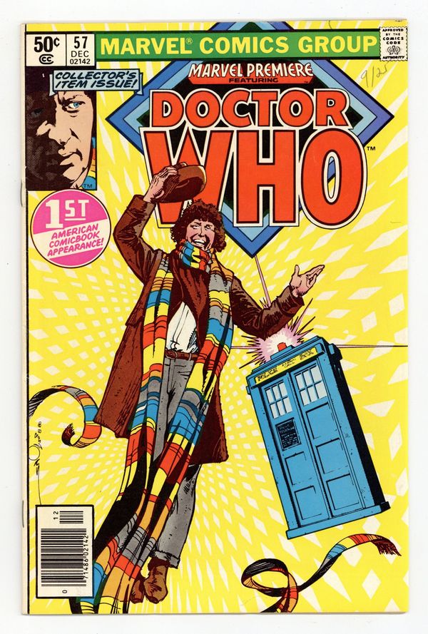 $12.00Newsstand Edition. Cover art by Walt Simonson. First U.S. comic book appearance of Dr. Who in "Doctor Who and the Iron Legion," script by Pat Mills and John Wagner, art by Dave Gibbons; The Doctor lands in an alternate dimension where Rome never fell. Three pages of character sketches by Dave Cockrum (one page inked by Frank Giacoia; another inked by Joe Rubinstein). The letters page contains a statement of ownership--average print run 269,621; average paid circulation 131,264. 36 pgs., full color. Cover price $0.50.