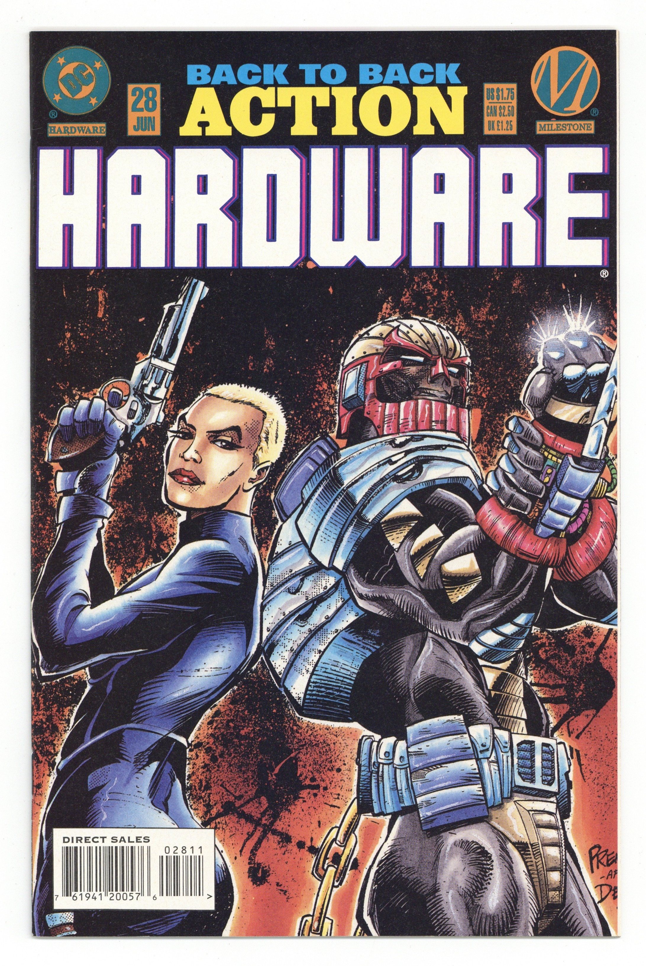 Part 3 of the 3-part 'The Hunt for Deathwish.' Hardware joins Marisa Rahm to track down Deathwish before Cyberbwana can. But Rahm also wants to avenge herself against Haus. Written by Adam Blaustein and Yves Fezzani, with art by Prentis Rollins and Aubrey Bradford. Cover by Rollins after Denys Cowan. Cover price $1.75.