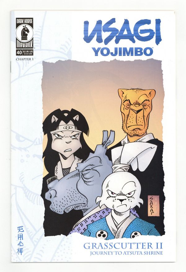 Published Aug 2000 by Dark Horse.$11.25Grasscutter II: Journey to Atsuta Shrine Part 2 of 7 - Story and art by Stan Sakai. In this second issue of Grasscutter II, the journey begins -- and so does the action! Usagi, Gen, and Priest Sanshobo hit the trail to return the mystical sword, Grasscutter, to the Atsuta Shrine, but it won't be a walk in the park. Two factions of warriors have their own designs on the sword and will stop at nothing to attain its commanding power. It's three determined samurai against two fearsome clans and the power of evil greed. Onward to adventure! 32 pages, B&W. Cover price $2.95.
