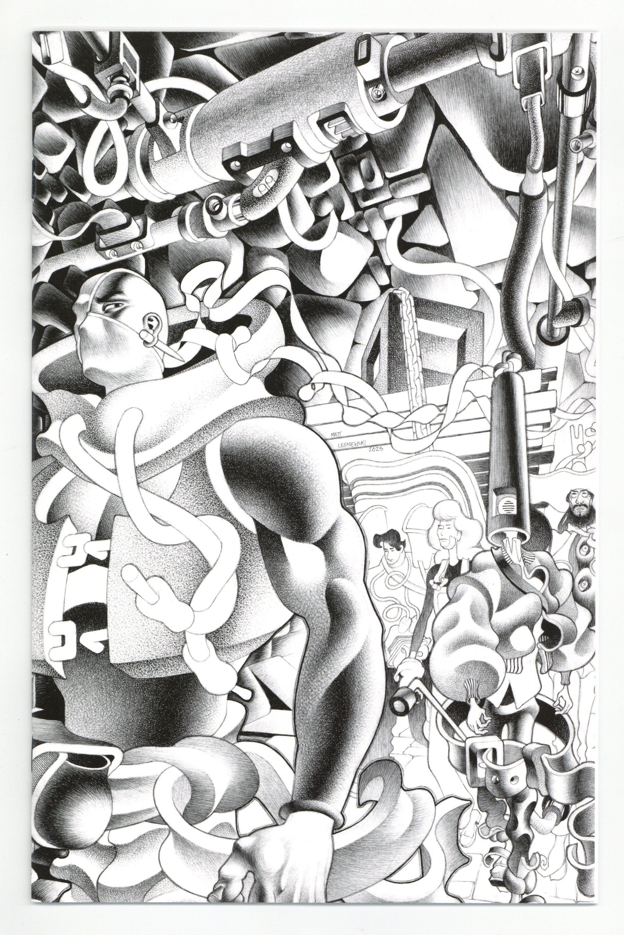 Limited 1 for 20 Retailer Incentive Variant Cover. Story by Matt Lesniewski. The must-read experience in visionary comics storytelling continues! From the distorted imagination of Eisner nominated writer and artist Matt Lesniewski (Mind MGMT Bootleg) comes the next epic chapter of this soon-to-be graphic classic! On a quest to reclaim the face he sacrificed to a troubled past, the man called Faceless and his new band of friends and followers are on a quest to the Hand Planet's most notorious metropolis: Pinky Town! (It's not our fault you haven't heard of it yet!)! 24 pages, full B&W. Cover price $4.99.
