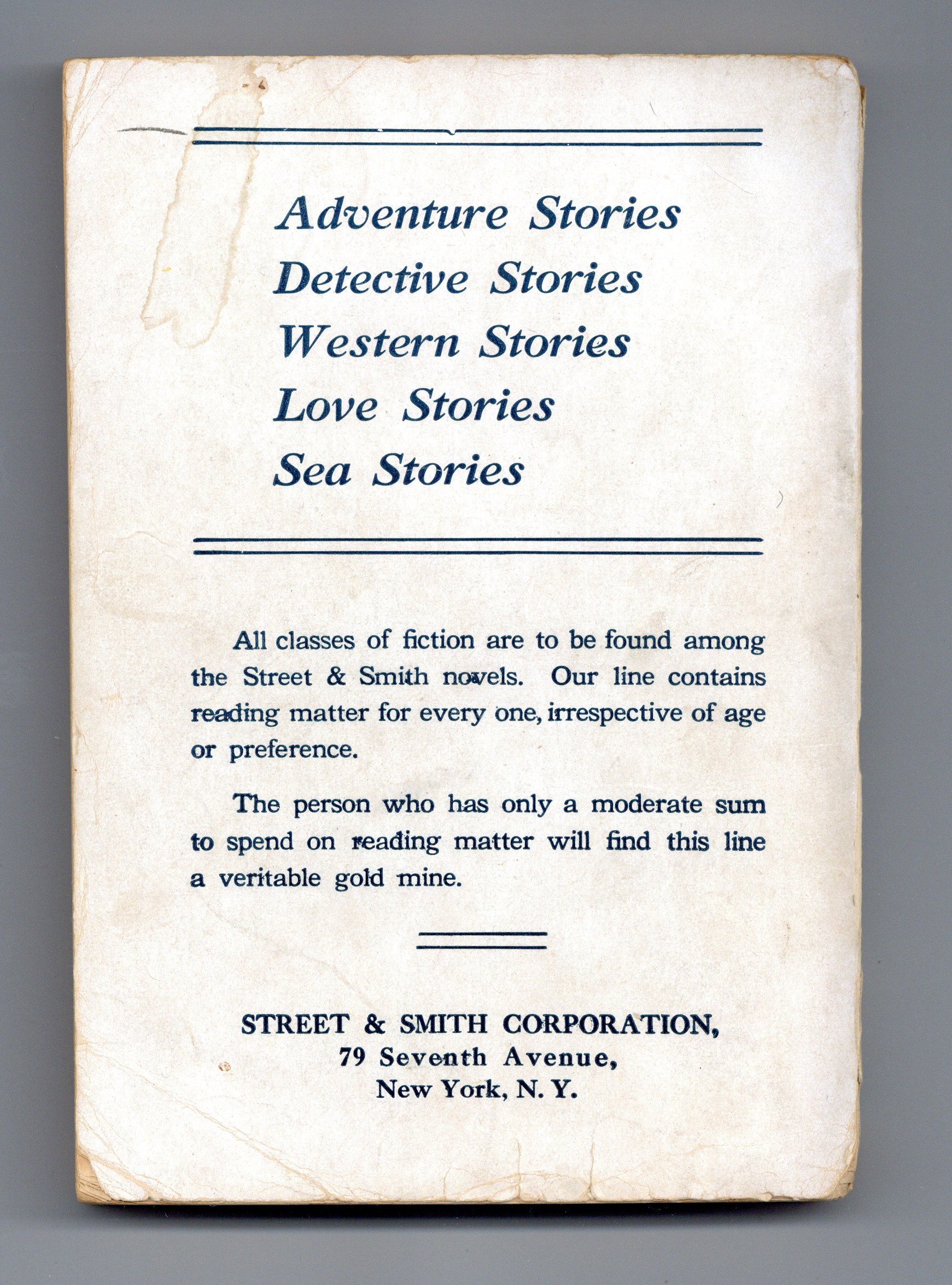 Published 1917 (est.) by Street & Smith.$25.00- Front cover detached 10%. Back cover detached 10%. Water damage: Slight.