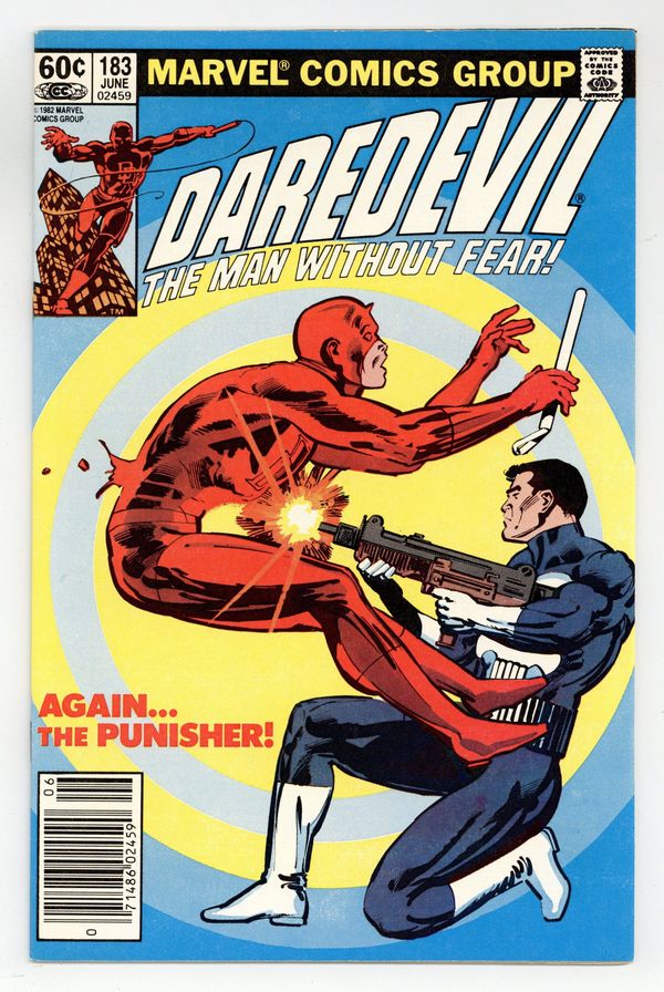 Ends Mar 2 7:53 PM CST Bid History 4 bids Current Bid $16 Your Secret Max Bid If you'd like to bid, please log in or register. Newsstand Edition. Cover pencils by Frank Miller, inks by Klaus Janson. Child's Play, script by Roger McKenzie and Frank Miller, pencils by Frank Miller (breakdowns) and Klaus Janson (finished art), inks by Klaus Janson; A young girl on drugs takes a dive out of her school window and dies, and her brother, DD and the Punisher are all trying to track down the dealer responsible; Matt proposes to Heather; Hogman [Peter Grunter] is the guest villain. The last few pages are probably penciled by Janson from Miller breakdowns. This story was originally scheduled for issue 167 but delayed because the Comics Code did not approve it in its original form. 36 pgs. Cover price $0.60. Cover price $0.60.