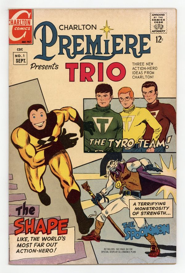 Trio: "The Shape" (script and pencils by "Grass" Green), "The Tyro Team" (script by Steve Skeates, pencils by Montes, inks by Bache), and "The Spookman" (script and art by Pat Boyette). Cover price $0.12.