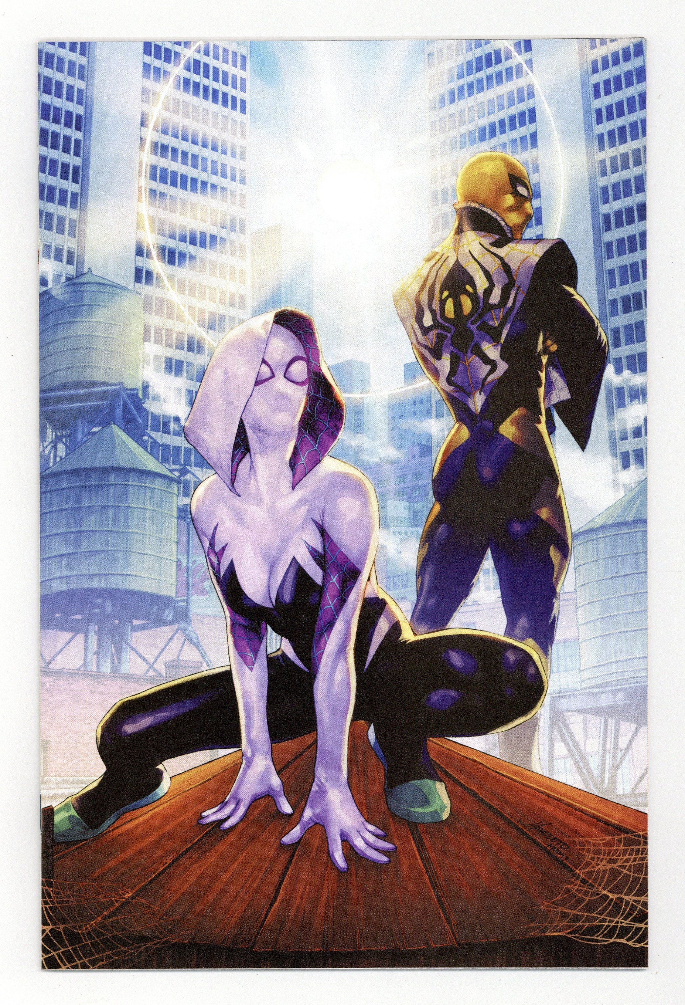 Tags: Spider-Man$9.00The Syndicate (The 616 Comics, Unknown Comics, Comic Traders, and Anti-Hero Gallery) exclusive Virgin Cover by Jay Anacleto. Written by Dan Slott; Marvel Various. Art by Bob McLeod; Marvel Various. Three brand new Spiders get their start here! WEB-WEAVER: A not-so-mild mannered fashion designer at Van Dyne gets spider-powers and shows us a very different kind of Spider-Slayer. HUNTER-SPIDER: Imagine a world where Sergei Kravinoff got Spider-Powers. You are not ready for the most hardcore Spider yet! Both of these and Phil Lord & Christopher Miller, the filmmakers behind the Spider-Verse movies, create a new Spider just in time for the END OF THE SPIDER-VERSE! 36 pages, full color. Rated T+
