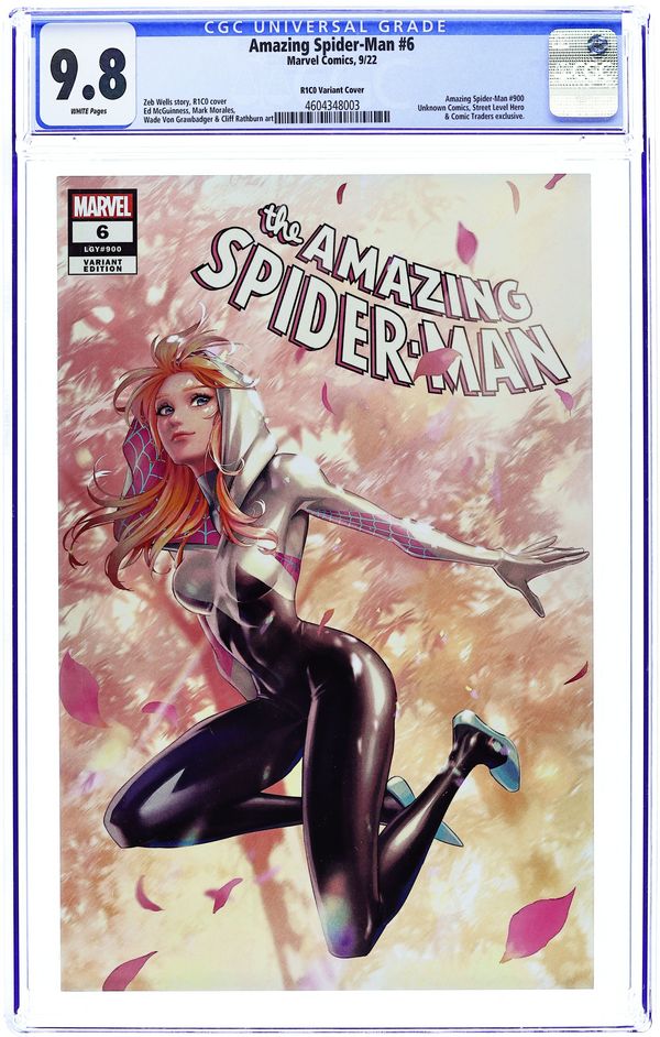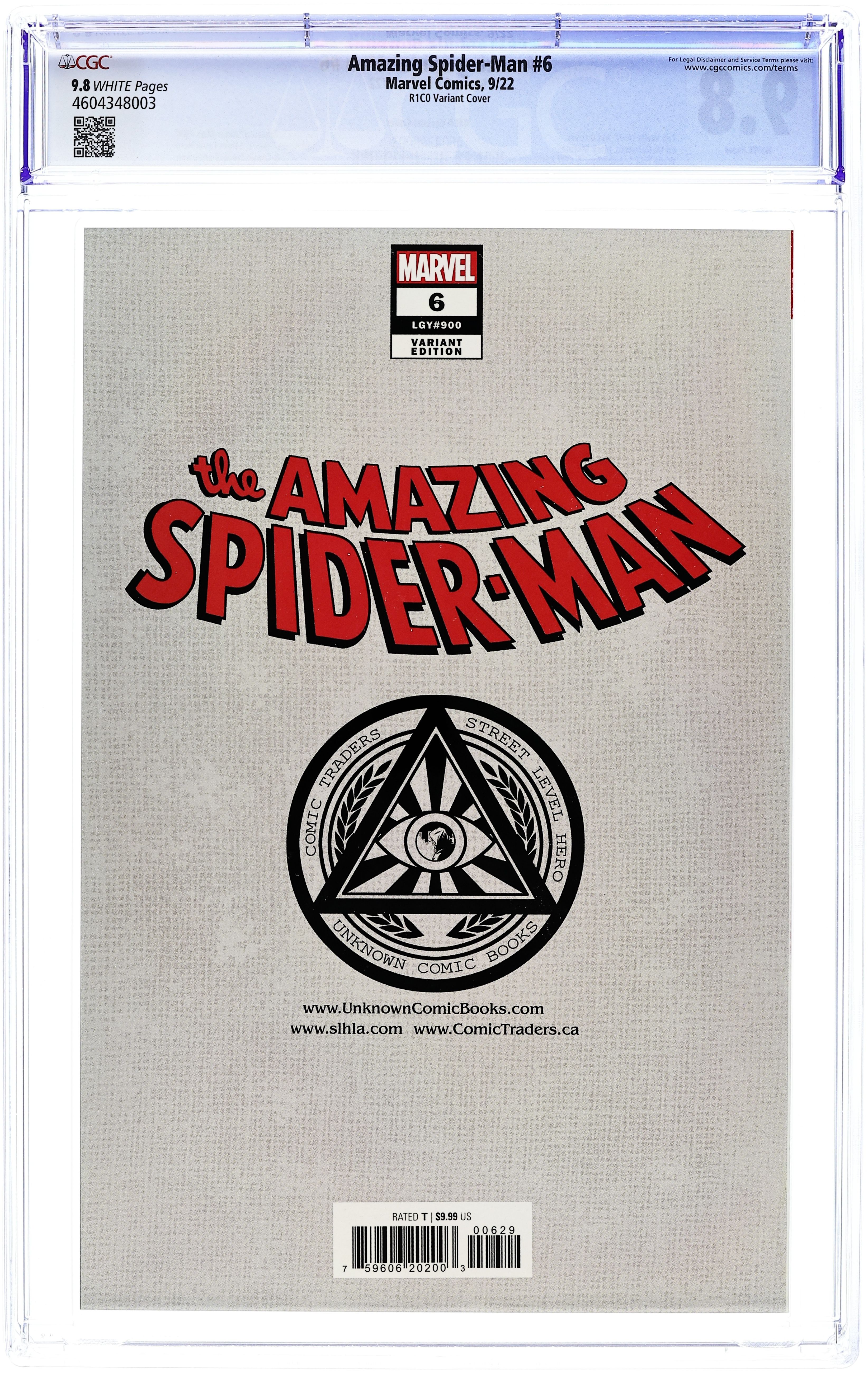 Comics Illuminati (Unknown Comics, Street Level Hero, and Comic Traders) Exclusive Cover by R1C0. Written by Zeb Wells. Art by Ed McGuinness. LANDMARK ISSUE #900! The nine-hundredth issue of AMAZING SPIDER-MAN comes out the month of Spider-Man's 60th Anniversary, and we are pulling out ALL THE STOPS! Someone from Spider-Man's past has captured the Sinister Six and used them to create the truly terrifying SINISTER ADAPTOID! This is one of the biggest adventures in Spider-History and you will not believe the ending!