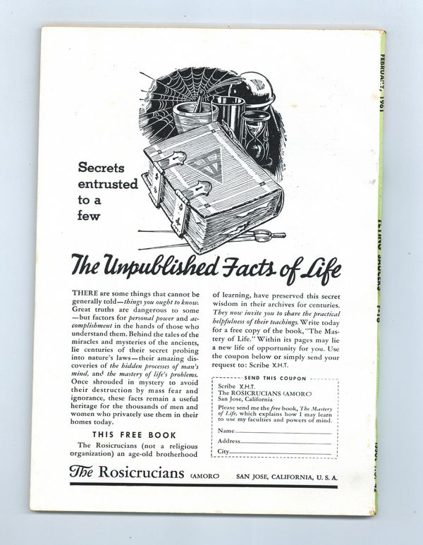 Published Feb 1961 by Palmer Publications.$54.00Published by Raymond A. Palmer, science fiction writer and editor of Amazing Stories and other publications. 6.5" x 9.25", 68 pages, B&W. Cover price $0.35.