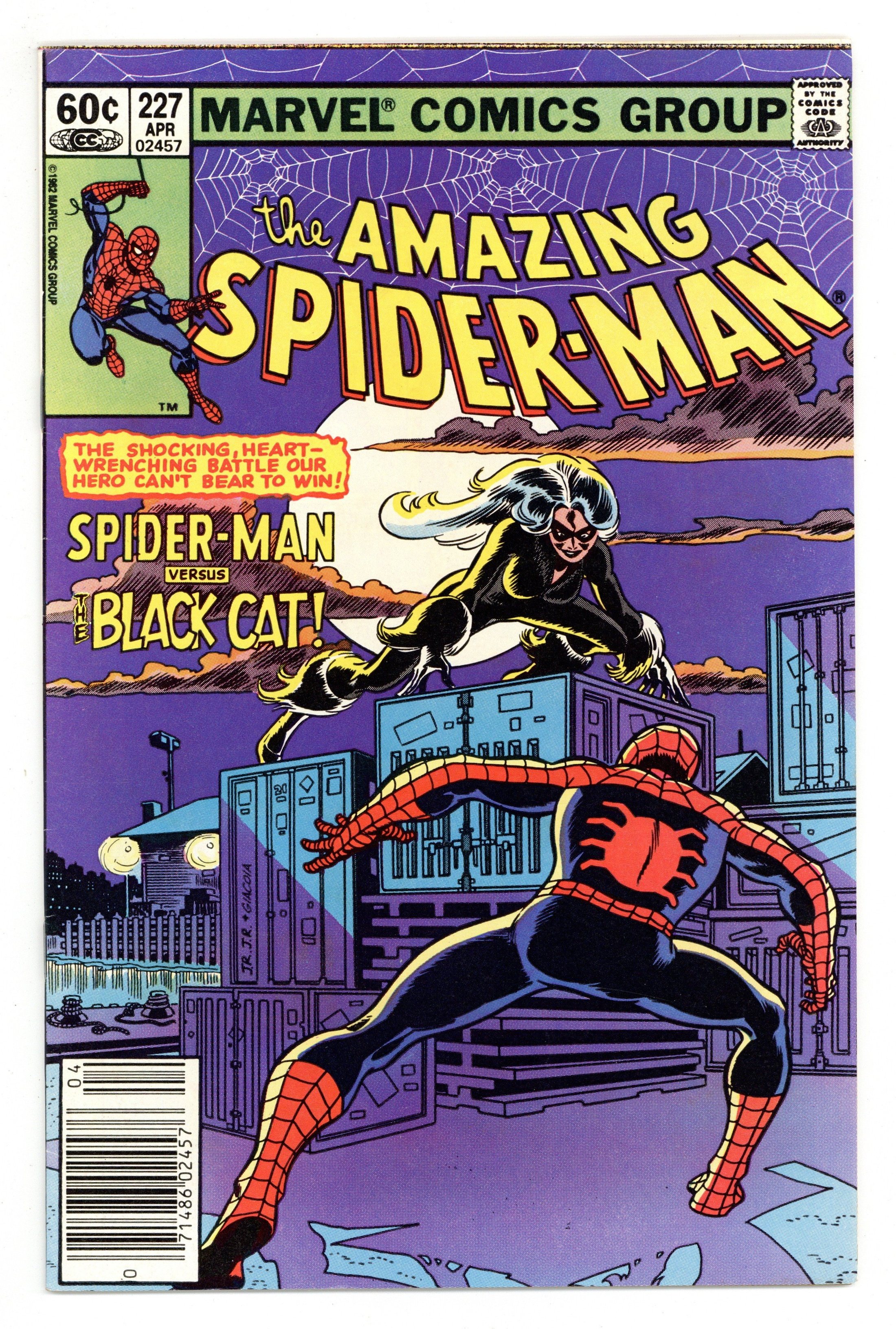 Tags: Spider-Man$23.00Newsstand Edition. "Goin' Straight!" Part 2 of 2. Script by Roger Stern. Art by John Romita Jr. (breakdowns) and Jim Mooney (finishes). Cover by John Romita Jr. and Frank Giacoia. The Black Cat agrees to give up her life of crime and go straight! But can Spider-Man trust her? Alas, the folly of a young web-slinger. When Felicia decides to pull one last caper, there's only one person that can stop her: the Amazing Spider-Man! With his heart breaking, the wall-crawler chases the cat from midtown to the eastside docks! At the river's murky edge, the web-slinger finally catches Felicia. Will he turn her in...or let her go? It's a no-win situation for your friendly neighborhood Spider-Man. Appearances by Captain Jean DeWolff, Debra Whitman, and Marcy Kane. Flashback cameos by Gwen Stacy and Mary Jane Watson. (Notes: The Black Cat returns in Spectacular Spider-Man 74. This issue includes a full-page ad for Hostess Fruit Pies featuring Captain America and Nick Fury vs. the Trapster. The letters page contains a statement of ownership: average print run 554,248; average paid circulation: 242,781.) 36 pages. Cover price $0.60.