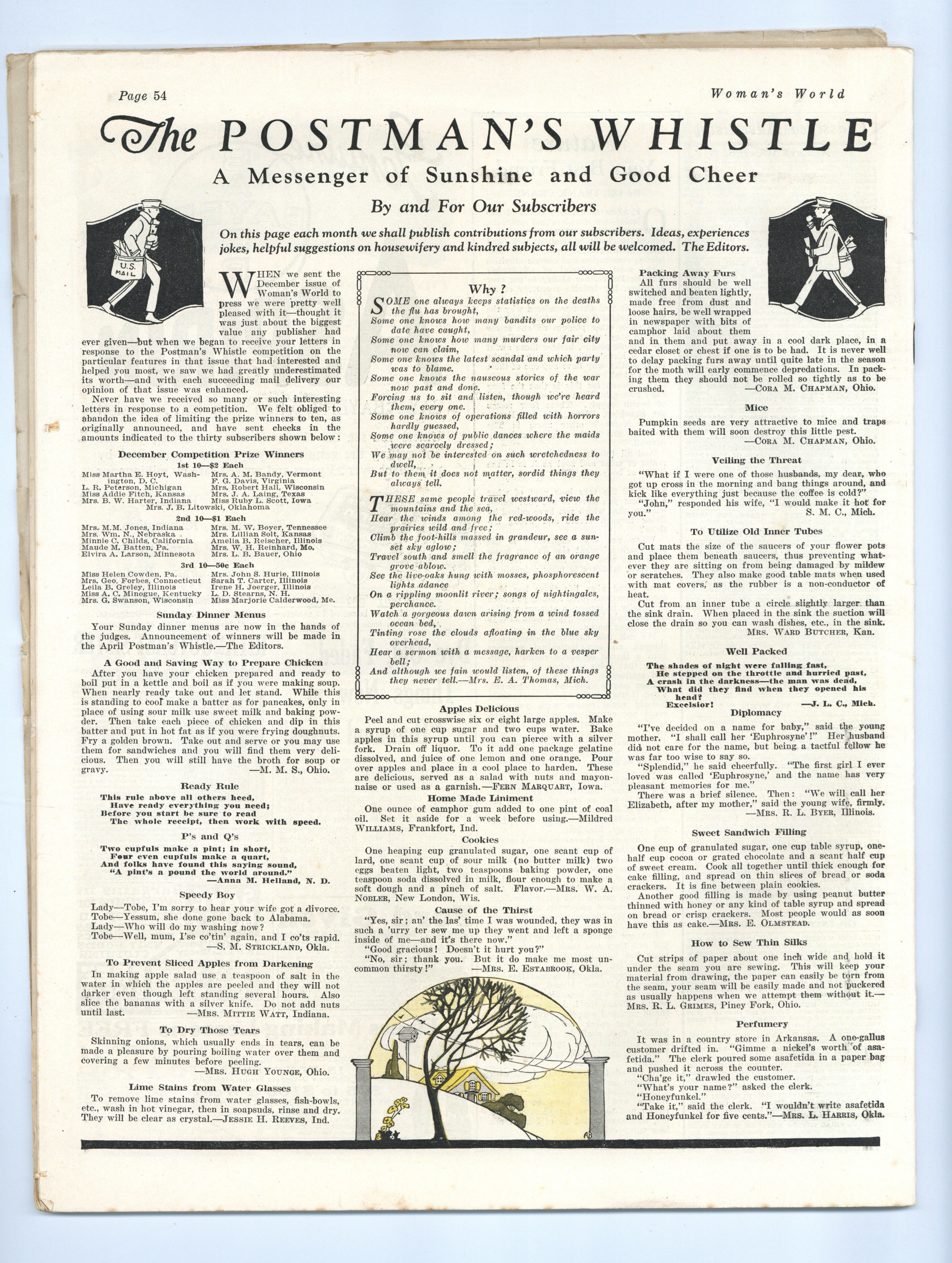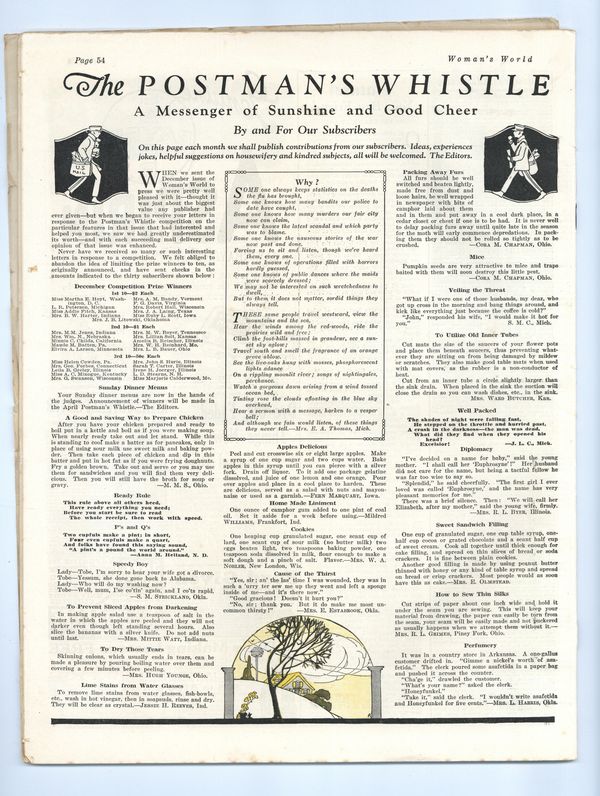 Women's magazine with stories, humor, and recipes. 10.25" x 13.5", 56 pages, B&W Cover price $0.10.