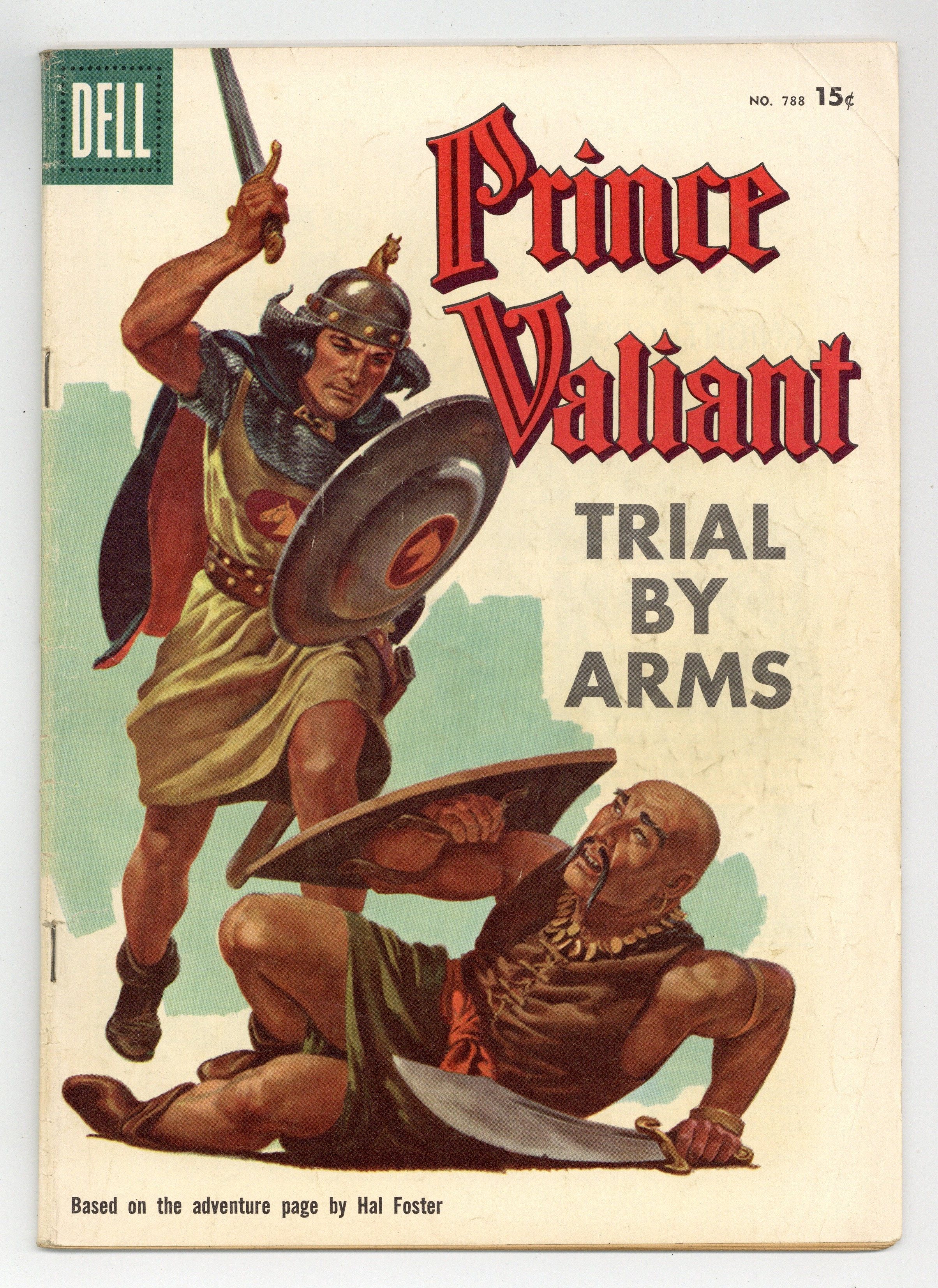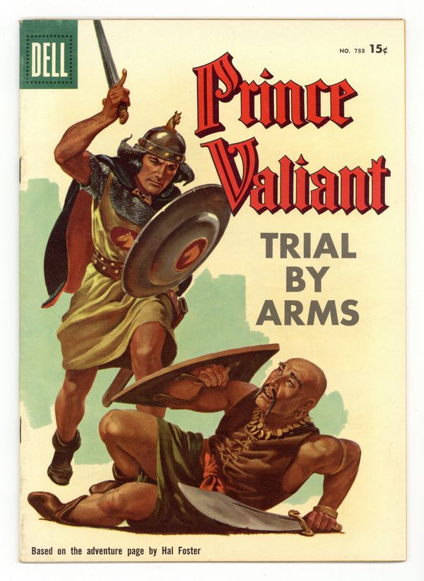 15¢ Edition. Indicia title is "PRINCE VALIANT, No. 788." Painted cover art by Morris Gollub. Steps To Knighthood, art by Bob Fujitani; the various stages of training to become a knight. Trial By Arms, script by Paul S. Newman, art by Bob Fujitani; King Arthur sends Prince Valiant and Boltar to Gaul, where they raise a ragtag army to defeat the Mongol raiders of Gandor, champion of the East. Based on the Prince Valiant Sunday newspaper strip by Hal Foster. 36 pages, full color. Cover price $0.15.