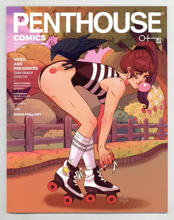 $20.00Written by Jean-David Morvan & Various. Art by Guillem March & Various. Cover by Perditah Byrnison. Cover art by Perditah Byrnison, known for her work with Lego, Mattel, and Disney Releasing 30 years after the original line debuted, Penthouse is proud to present the ongoing return of Penthouse Comics! Featuring a wealth of talent from all across the industry telling stories in the action, thriller, and horror genres, issue #1 debuts four new ongoing tales. Gun Crazy debuts the wild ride of Dolly Sanchez and Lanoya O'Brien, two girls fighting for survival in this violent story in the crossroads of Tarantino, VHS stuff, and the 80's. Guillem March draws Jean Dufaux's The Dream, a tale about Megan, a Hollywood casting director who attempts to bring out the potential actor hidden deep inside a stripper in the San Francisco suburbs. I Spit On Your Grave, is an adaptation of Vernon Sullivan's famous novel about Lee Anderson, whose only goal is to avenge the death of his brother. Along the way he'll fall into a life of debauchery and sex. Miss October follows a young and high-flying female who desperately must find the killer whose murdering women, one-by-one and dubbing them by each month of the year, before she's next! As always, Penthouse Comics features a bonus photoshoot and editorial! 96 pages, full color. Rated M Cover price $9.99.