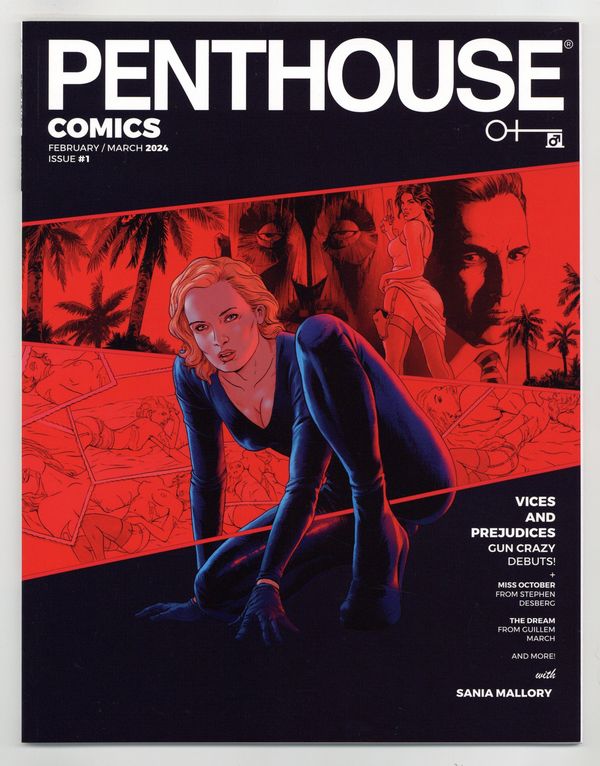 $20.00Written by Jean-David Morvan & Various. Art by Guillem March & Various. Cover by Robert Sammelin. Cover art by Robert Sammelin, whose massive list of clients include Apple, Nike, The New York Times, Boom! Studios, and many others. Releasing 30 years after the original line debuted, Penthouse is proud to present the ongoing return of Penthouse Comics! Featuring a wealth of talent from all across the industry telling stories in the action, thriller, and horror genres, issue #1 debuts four new ongoing tales. Gun Crazy debuts the wild ride of Dolly Sanchez and Lanoya O'Brien, two girls fighting for survival in this violent story in the crossroads of Tarantino, VHS stuff, and the 80's. Guillem March draws Jean Dufaux's The Dream, a tale about Megan, a Hollywood casting director who attempts to bring out the potential actor hidden deep inside a stripper in the San Francisco suburbs. I Spit On Your Grave, is an adaptation of Vernon Sullivan's famous novel about Lee Anderson, whose only goal is to avenge the death of his brother. Along the way he'll fall into a life of debauchery and sex. Miss October follows a young and high-flying female who desperately must find the killer whose murdering women, one-by-one and dubbing them by each month of the year, before she's next! As always, Penthouse Comics features a bonus photoshoot and editorial! 96 pages, full color. Rated M Cover price $9.99.