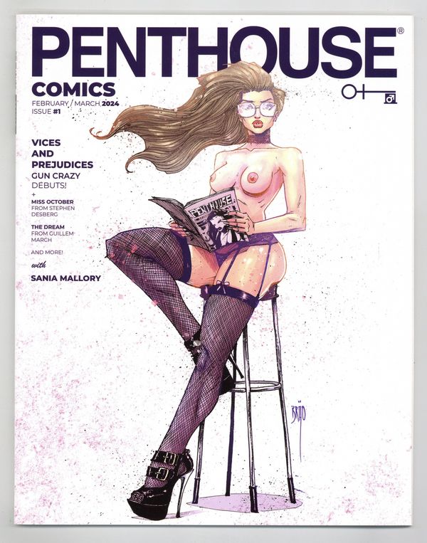 $18.00Written by Jean-David Morvan & Various. Art by Guillem March & Various. Cover by Brao. All polybag NSFW variants come with a free print that covers the NSFW cover. Cover art by BRÄO whose work for Sumerian Comics on Vermillion gained him many readers. He's continued with covers on titles like American Psycho, Basic Instinct, and more. Releasing 30 years after the original line debuted, Penthouse is proud to present the ongoing return of Penthouse Comics! Featuring a wealth of talent from all across the industry telling stories in the action, thriller, and horror genres, issue #1 debuts four new ongoing tales. Gun Crazy debuts the wild ride of Dolly Sanchez and Lanoya O'Brien, two girls fighting for survival in this violent story in the crossroads of Tarantino, VHS stuff, and the 80's. Guillem March draws Jean Dufaux's The Dream, a tale about Megan, a Hollywood casting director who attempts to bring out the potential actor hidden deep inside a stripper in the San Francisco suburbs. I Spit On Your Grave, is an adaptation of Vernon Sullivan's famous novel about Lee Anderson, whose only goal is to avenge the death of his brother. Along the way he'll fall into a life of debauchery and sex. Miss October follows a young and high-flying female who desperately must find the killer whose murdering women, one-by-one and dubbing them by each month of the year, before she's next! As always, Penthouse Comics features a bonus photoshoot and editorial! 96 pages, full color. Rated M Cover price $12.99.