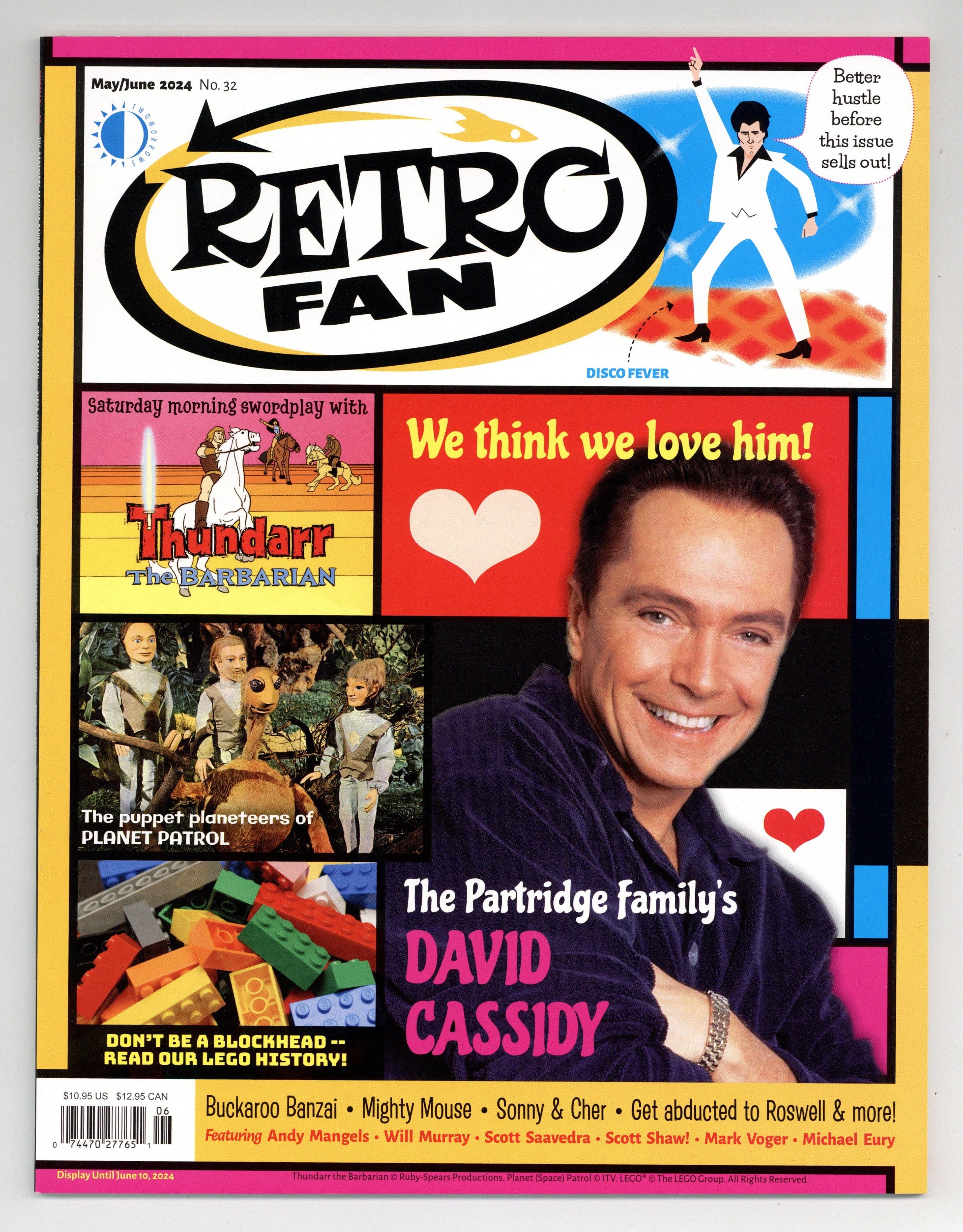Published Apr 2024 by TwoMorrows.$10.75Featuring a profile of The Partridge Family's David Cassidy, Thundarr the Barbarian, LEGO blocks, Who Created Mighty Mouse?, Buckaroo Banzai turns forty, Planet Patrol, Big Little Books, Disco Fever, and more! Featuring columns by Andy Mangels, Will Murray, Scott Saavedra, Scott Shaw, and Mark Voger. 80 pages, full color. Cover price $10.95.