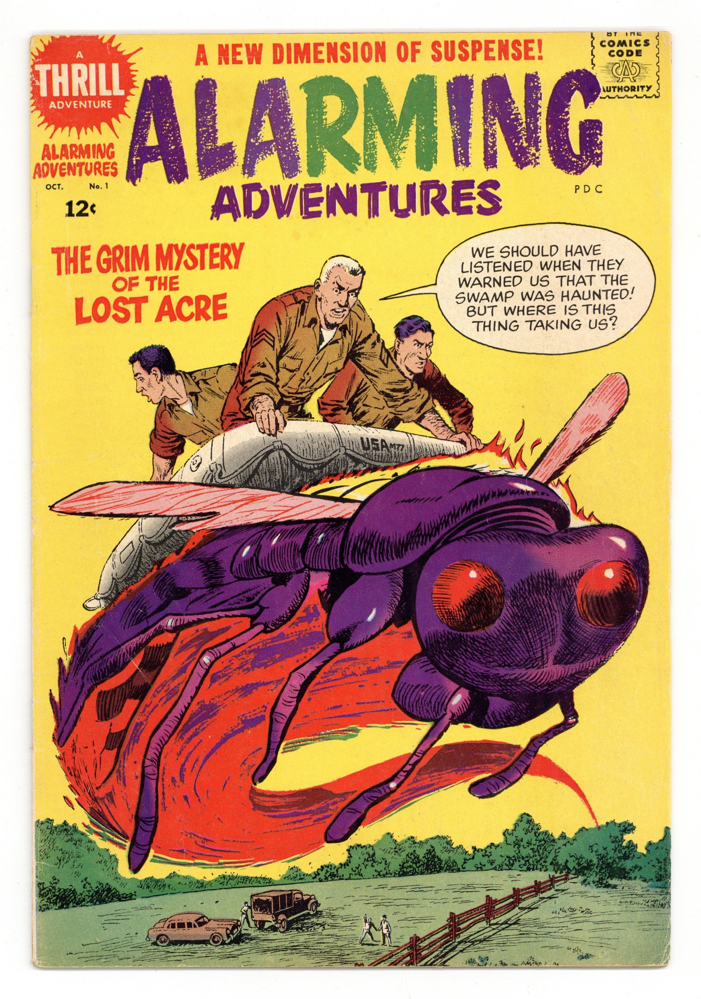 Cover by John Severin. Stories and art by Dick Ayers, Marvin Stein, Reed Crandall, George Tuska, Bernard Baily and Archie Goodwin. An anthology of science-fiction and horror stories from publisher Harvey. A sentient piece of land resists any attempt by humans to civilize or develop it. Aliens arrive on Earth, only to discover human civilization destroyed by robots run amuck. A hard-luck space captain crashes on Mars, in a story by comics legends Archie Goodwin and Al Williamson. The Lost Acre; The Night Visitor; The Aliens; Hermit; Paradise in Space; The Invaders; Silent Street. 36 pages, full color. Cover price $0.12.