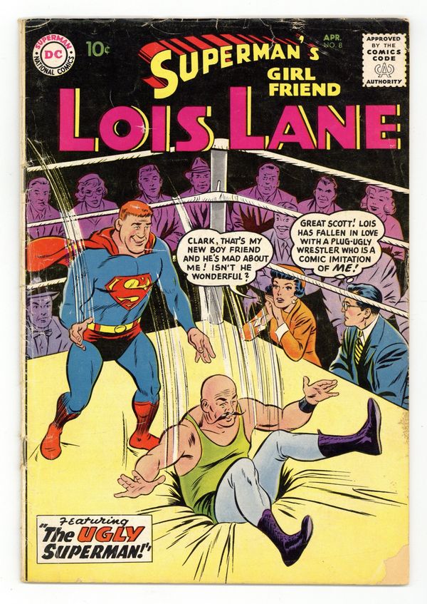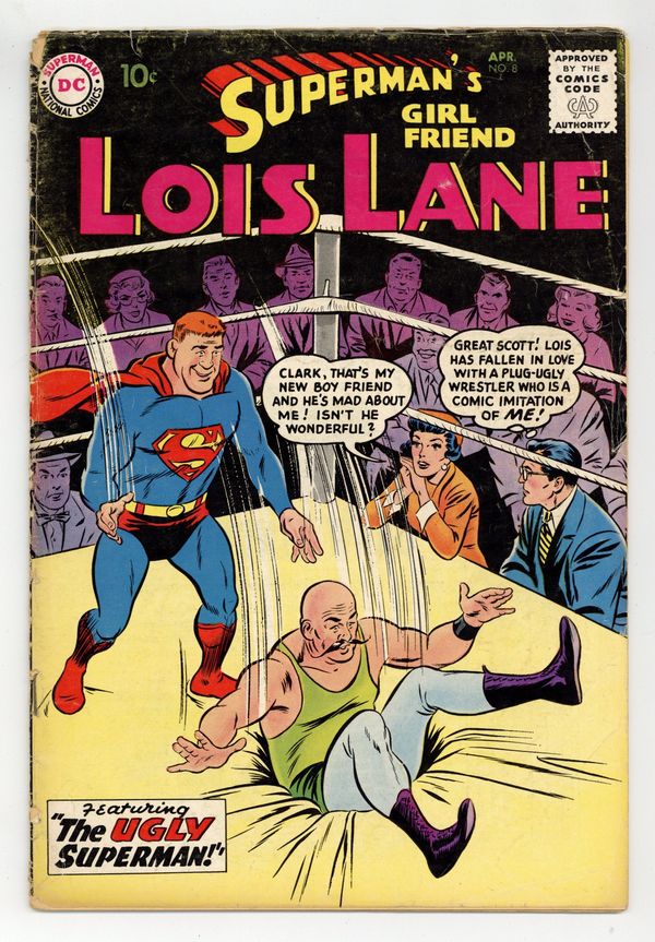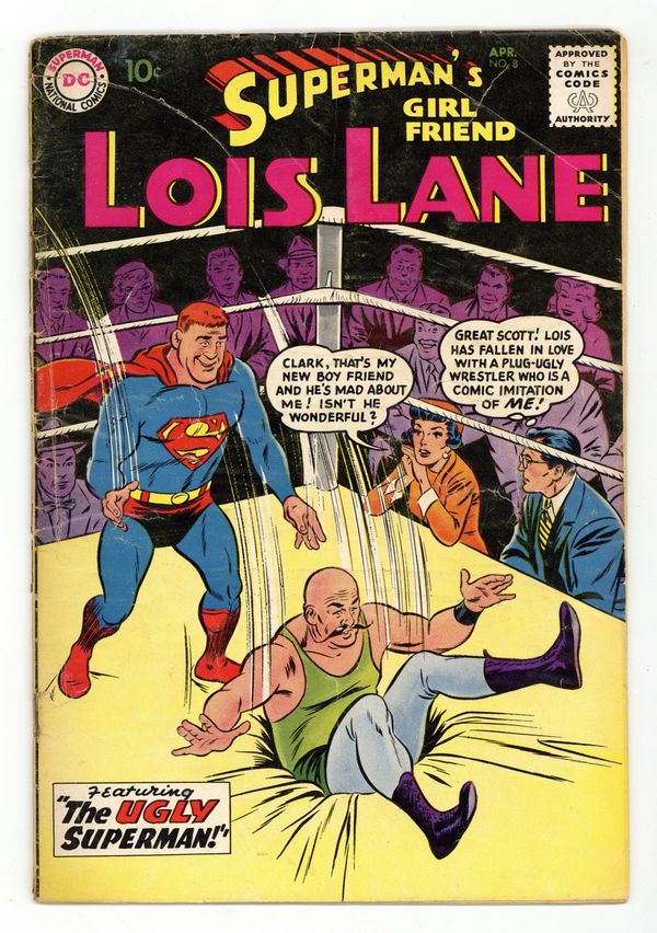 Cover pencils by Curt Swan, inks by Stan Kaye. The Superwoman of Metropolis!, script by Alvin Schwartz, art by Kurt Schaffenberger; Superman transfers some of his powers to Lois Lane in order to teach her a lesson. House ad for The Brave and the Bold #23. The Ugly Superman!, script by Robert Bernstein, art by Kurt Schaffenberger; A wrestler billed as the Ugly Superman falls for Lois. But when he won't stop forcing his attention on Lois, Superman teaches him who the better man is. Peg humor page by Henry Boltinoff. Queen for a Day!, script by Robert Bernstein, pencils by Wayne Boring, inks by Stan Kaye; Clark and Lois are shipwrecked on an island full of Amazons. 36 Pages, Full Color. Cover price $0.10.
