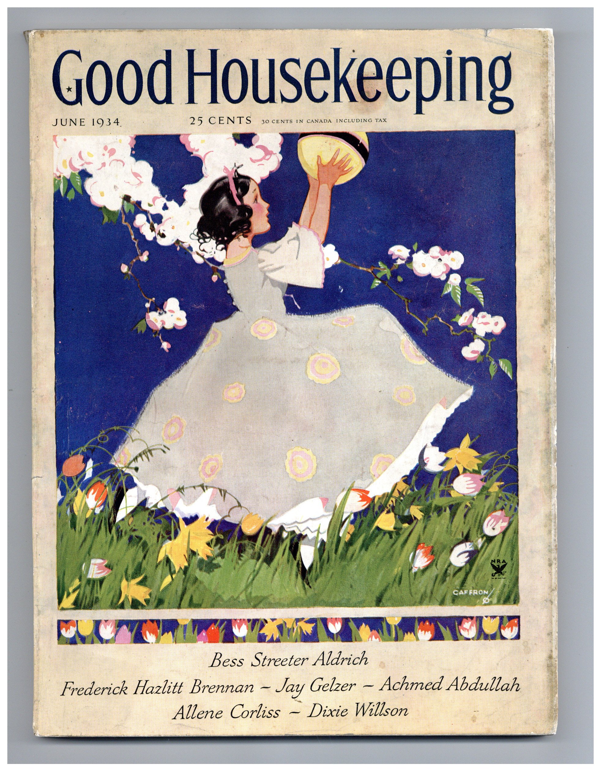 This issue features Donald Duck's first appearance in a magazine or comic book. Although this issue of Good Housekeeping is cover dated June, 1934,it was on the newsstand a month earlier when the "Wise Little Hen," a Silly Symphony cartoon, debut on June 7 at Radio City Music Hall in New York City. The beautiful "Wise Little Hen" two-page, full-color art is by Thomas Wood. This issue of Good Housekeeping also contains "Canyon Kiddies," a historic and long out of print comic page about American Indians by James Swinnerton.
