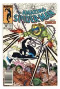 Tags: Spider-Man$145.00Newsstand Edition. "Survival of the Hittist!" Part 2 of 2. Script by David Michelinie. Pencils by Todd McFarlane. Inks by Bob McLeod. Cover by Todd McFarlane. After their waterfront arms theft goes awry, the Life Foundation turns the tables on Chance! The mysterious survivalist group abducts the mercenary and takes him to their secret headquarters in northern New Jersey! But thanks to a well-placed spider tracer, the web-slinger infiltrates the foundation's secluded colony the next day...and rescues Chance! So now the adversaries of 24 hours ago suddenly become allies to avoid death...courtesy of the Life Foundation! First appearance (and cameo on the last page) by Venom. Cameo appearances by Eddie Murphy, Paul Schaffer, and Joe Robertson. Last 75¢ issue. 36 pages, full color. (Note: Chance returns in Amazing Spider-Man 336.) Cover price $0.75.