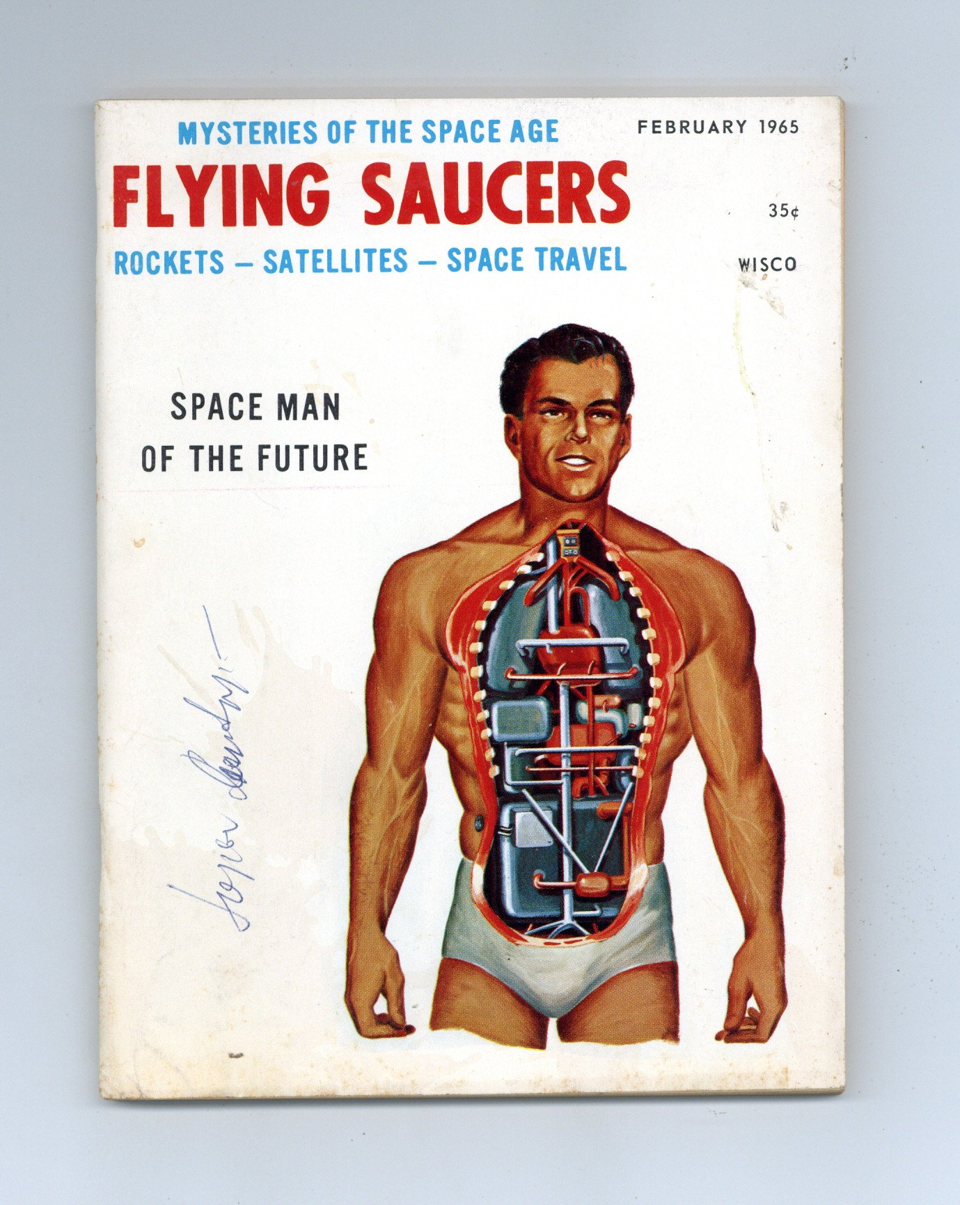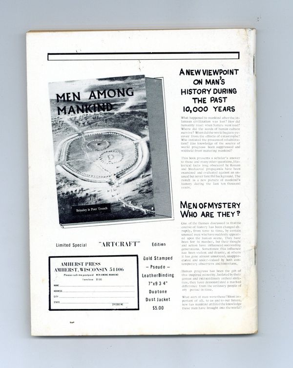 Edited by Ray Palmer. Articles about visitations from other worlds and American efforts at space travel. 5 1/2-in. x 7 1/4-in. 100 pages, B&W. Cover price $0.35.