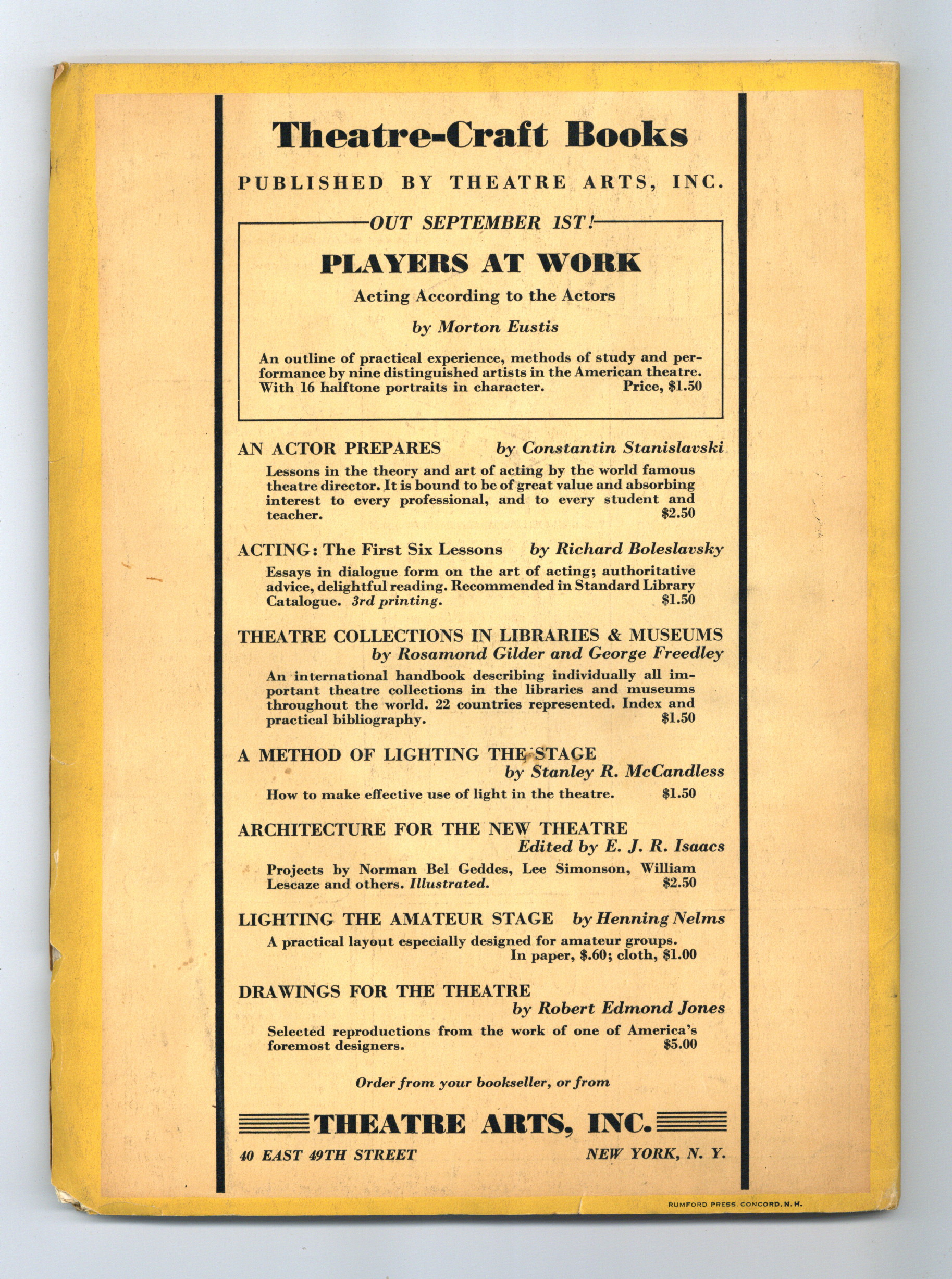 Published Sep 1937 by Theatre Arts, Inc..$26.00- Staple rust: Slight.