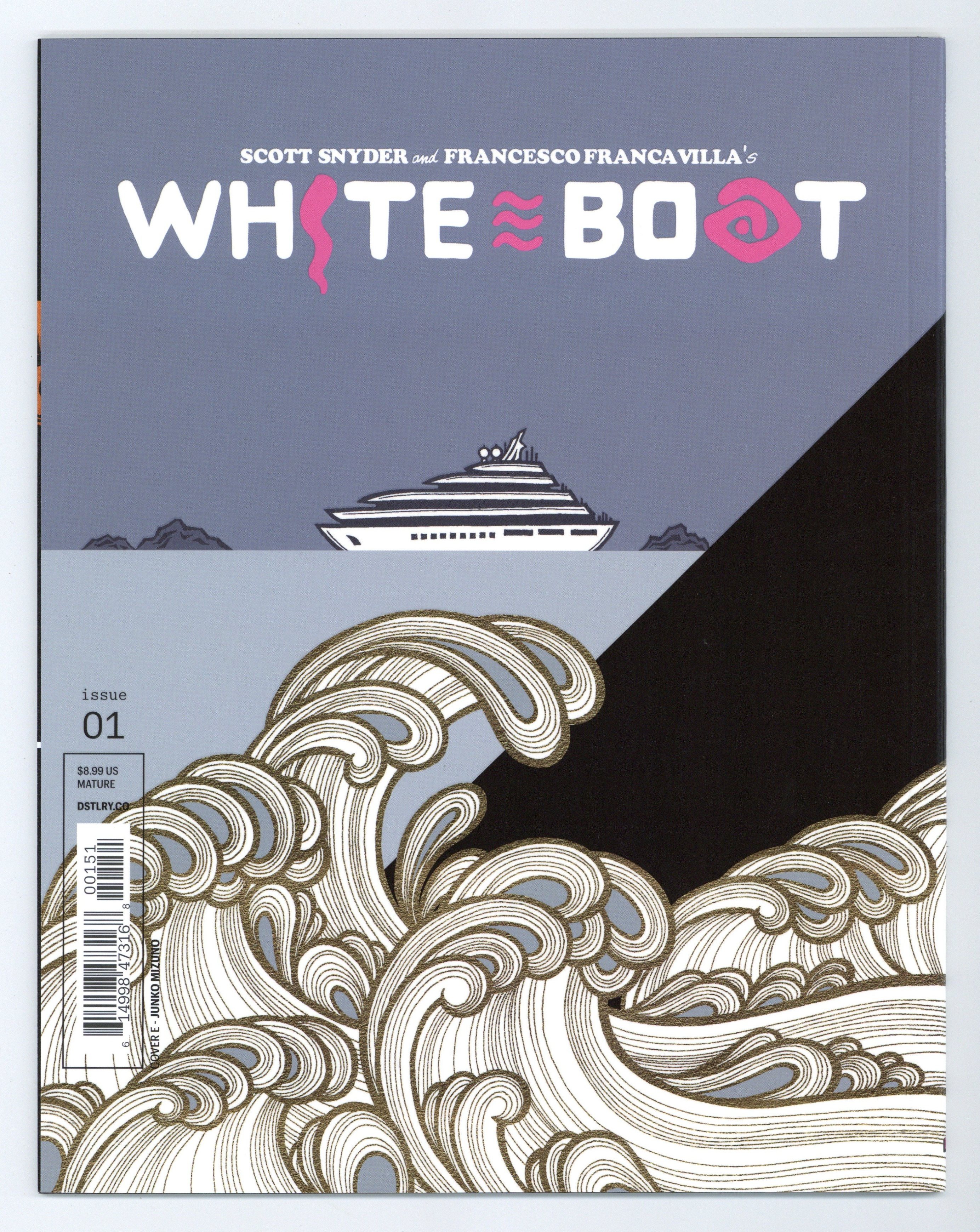 Published May 2024 by Dstlry Media.$18.00Limited 1 for 50 Retailer Incentive Variant Cover. Written by Scott Snyder. Art by Francesco Francavilla. Cover by Junko Mizuno. NEW SERIES DEBUT from the acclaimed team behind Detective Comics and Night of the Ghoul comes a modern horror classic! White Boats are the mega-yachts that the super-rich use to traverse the globe-floating islands where your every desire can be fulfilled. And getting invited on board one should be a dream come true…that is until the crew traps and transports you to a remote island where secret cults have existed for millennia, working on something called 'The Human Project.' Does the White Boat ship you to paradise or sink you into hell on earth? 48 pages, full color. Rated M Cover price $8.99.