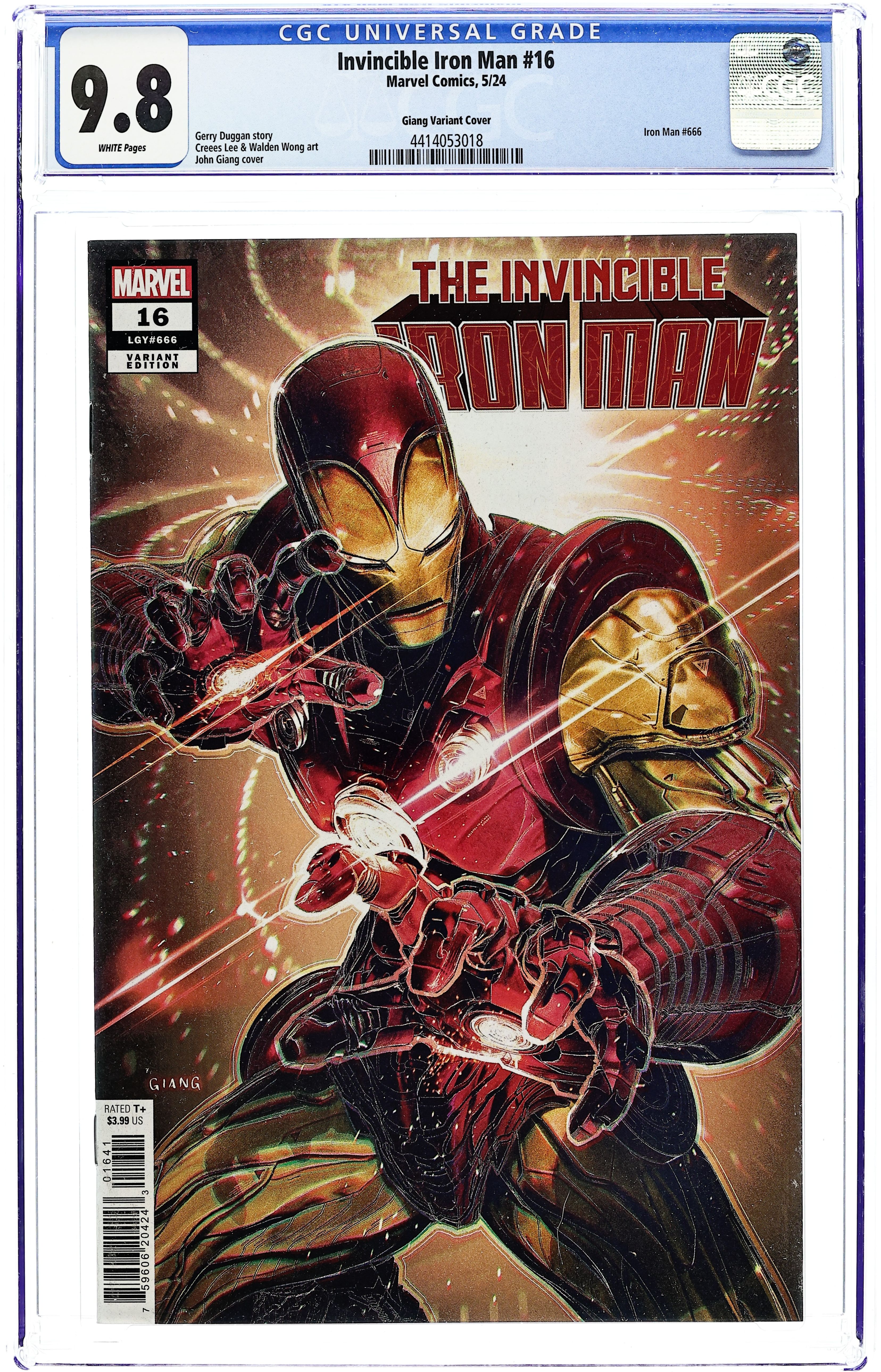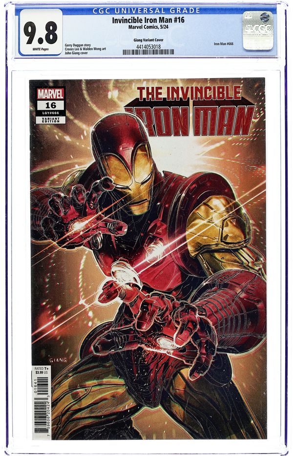 Written by Gerry Duggan. Art by Creees Lee. Cover by John Giang. D-Day is here and there is absolutely a main event: Iron Man vs. Feilong! Get ready for the biggest clash of armor you've ever seen! Plus: Tony gets some new suits! 28 pages, full color. Rated T+ Cover price $3.99.