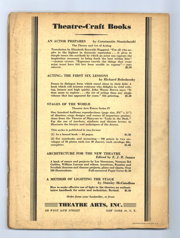 Published Nov 1944 by Theatre Arts, Inc..$23.00Theatre Arts is legendary for its thorough and insightful coverage of the stage, both in American and England. Less well-known is the fact that TAM also provided some outstanding coverage of motion pictures, Broadway and Hollywood. 8.5" x 11", 76 pages, B&W with spot color. Cover price $0.35.