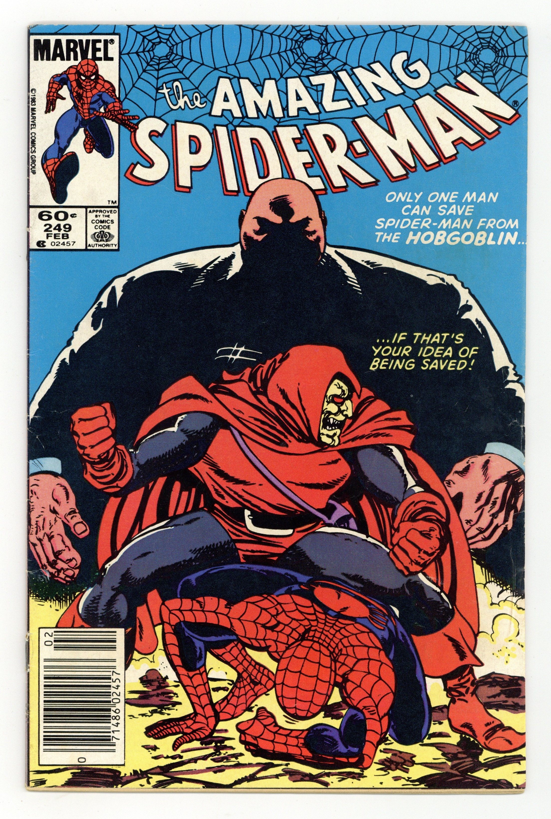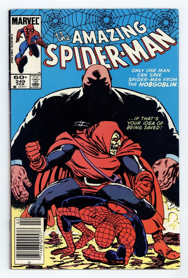 Newsstand Edition. "Secrets!" Part 1 of 3. Script by Roger Stern. Art by John Romita Jr. (breakdowns) and Dan Green (finishes). Cover by John Byrne. A mysterious individual is blackmailing the movers and shakers of New York City! And the group of victims includes Harry Osborn and J. Jonah Jameson! At the prestigious century club in Manhattan, the distinguished businessmen assemble to meet their tormentor...the Hobgoblin! The goblin plans to make his prey squirm in their seats! But there happens to be two other men relaxing at the club this afternoon...Mr. Wilson Fisk and Mr. Peter Parker! Perhaps better known as the Kingpin and the Amazing Spider-Man! Wow, is a three-way throw down about to erupt? Retelling of the Green Goblins origin. Cameo appearance by Mary Jane Watson. Flashback cameos by Norman Osborn and the Scorpion. (Note: This three-part story was reprinted in the 1992 trade paperback: The Origin of the Hobgoblin; and the 2011 trade paperback also titled: The Origin of the Hobgoblin.) 36 pgs. Cover price $0.60.