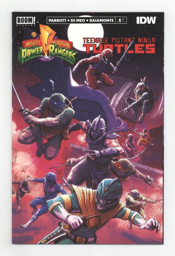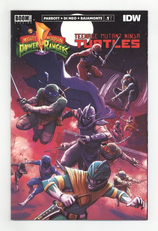 Published Jan 2020 by Boom Studios.$9.60Split Decision, Outer Limits Boro, and One Stop Shop Comics Exclusive Variant Cover by Ben Bishop. Written by Ryan Parrott. Art by Simone Di Meo. * THE MIGHTY MORPHIN POWER RANGERS AND THE TEENAGE MUTANT NINJA TURTLES MEET FOR THE FIRST TIME! The Power Rangers arrive in New York City to find Tommy Oliver (a.k.a. The Mighty Morphin Green Ranger) but soon discover he's joined forces with the villainous Shredder and the Foot Clan! * As the Rangers are sent reeling by this betrayal, they're confronted by another (fr)enemy... the Teenage Mutant Ninja Turtles! Can these heroes find a way to work together to defeat the bad guys and save the world from total destruction?! * Written by Ryan Parrott (Power Rangers: Necessary Evil) and illustrated by Simone di Meo (Mighty Morphin Power Rangers, Venom Annual), the Mighty Morphin Power Rangers fight - and maybe team up with - the Teenage Mutant Ninja Turtles for the first time. 32 pages, full color.