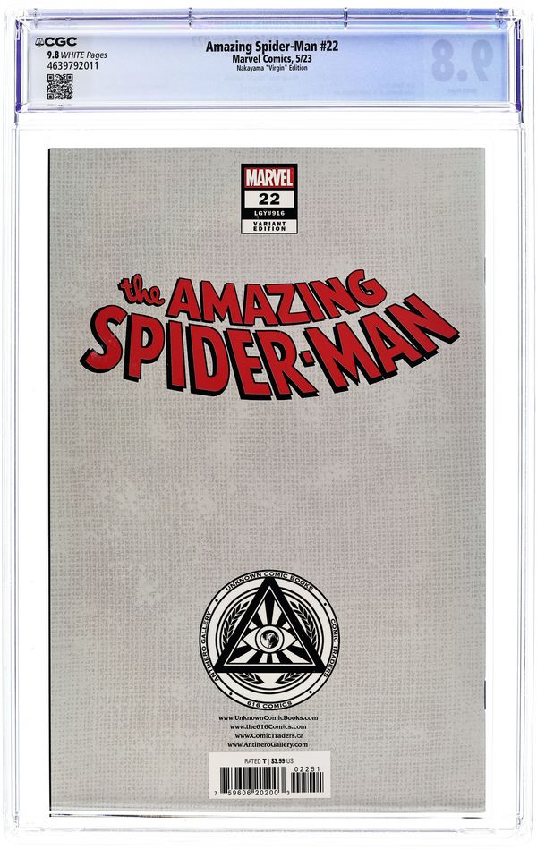 Comics Illuminati (Unknown Comics, Comic Traders, Anti-Hero Gallery, and The 616 Comics) Exclusive Virgin Cover by David Nakayama. Written by Zeb Wells. Art by John Romita Jr. Who is this mysterious figure and what do they have to do with Peter's and Mary Jane's disappearances?! 28 pages, Full color. Rated T.